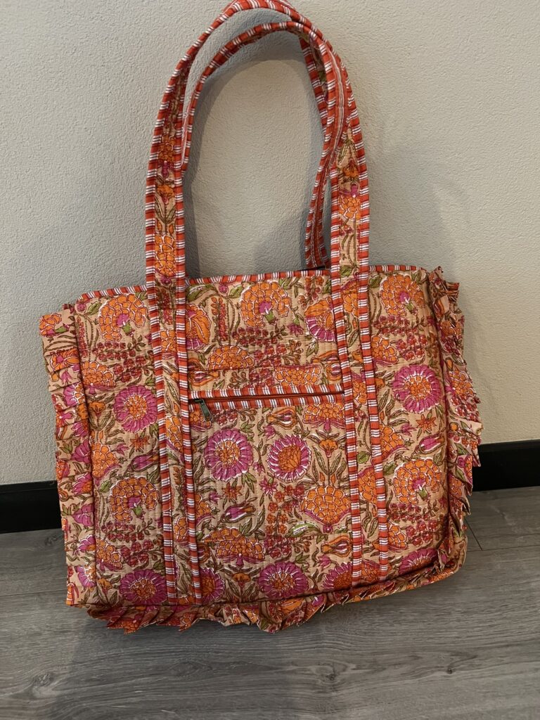 Quilt shopper bag MET RUFFLE – Oranje/Roze bloem