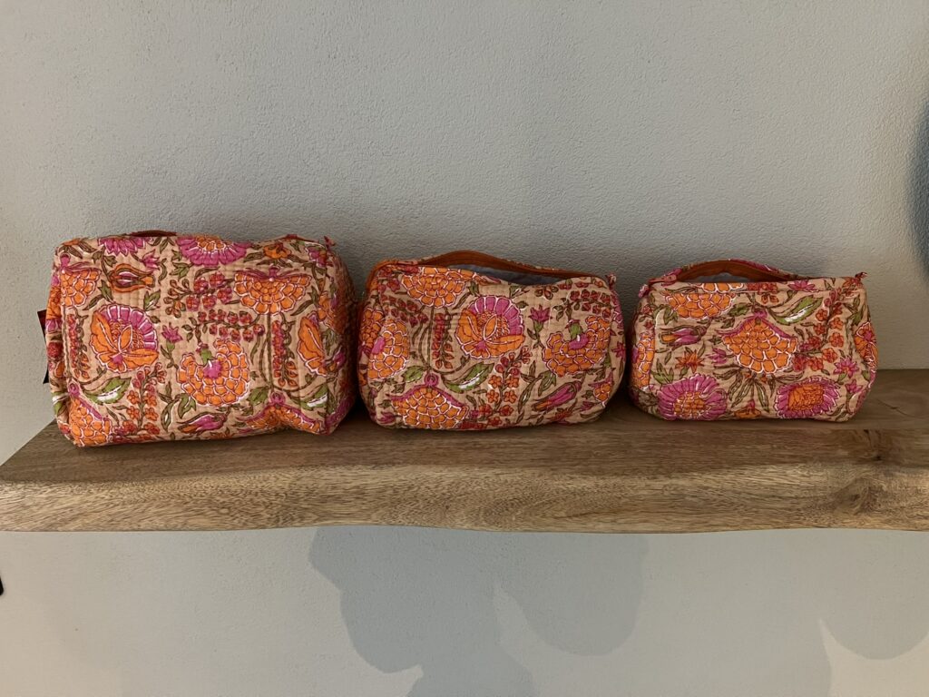 Katoenen toilettas – Roze/Oranje bloem