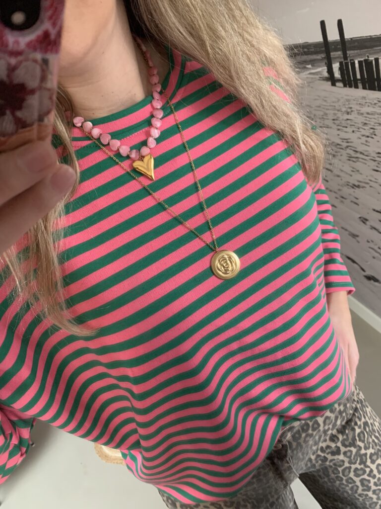 Streep Longsleeve – Groen/Fushia