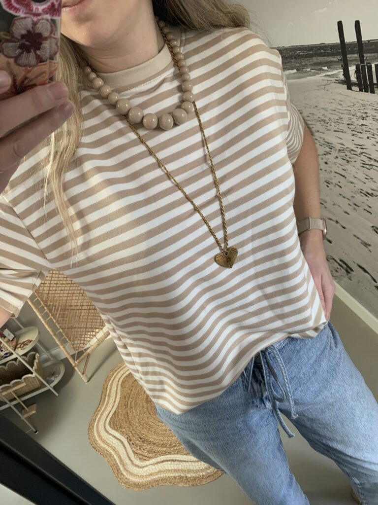 Streep t-shirt/shortsleeve – Beige/Wit