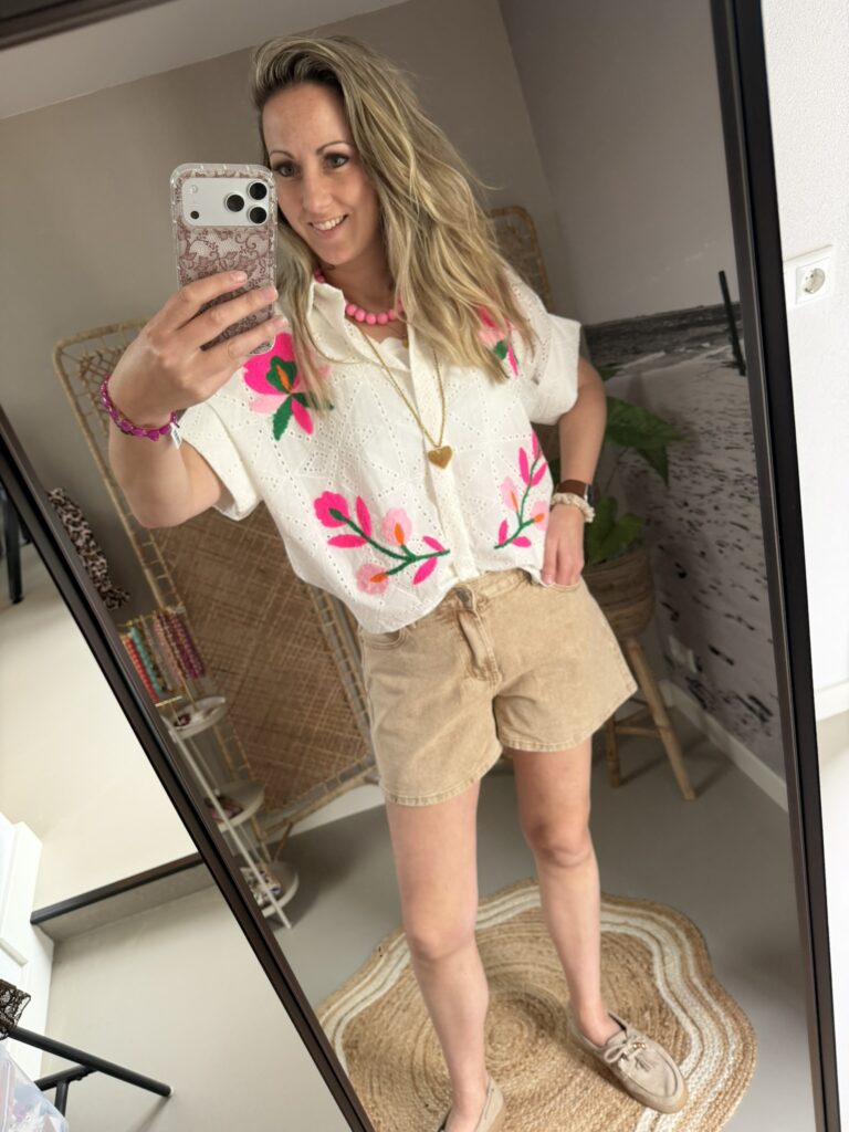 Blouse broderie Flower – Wit/Roze/Multicolour
