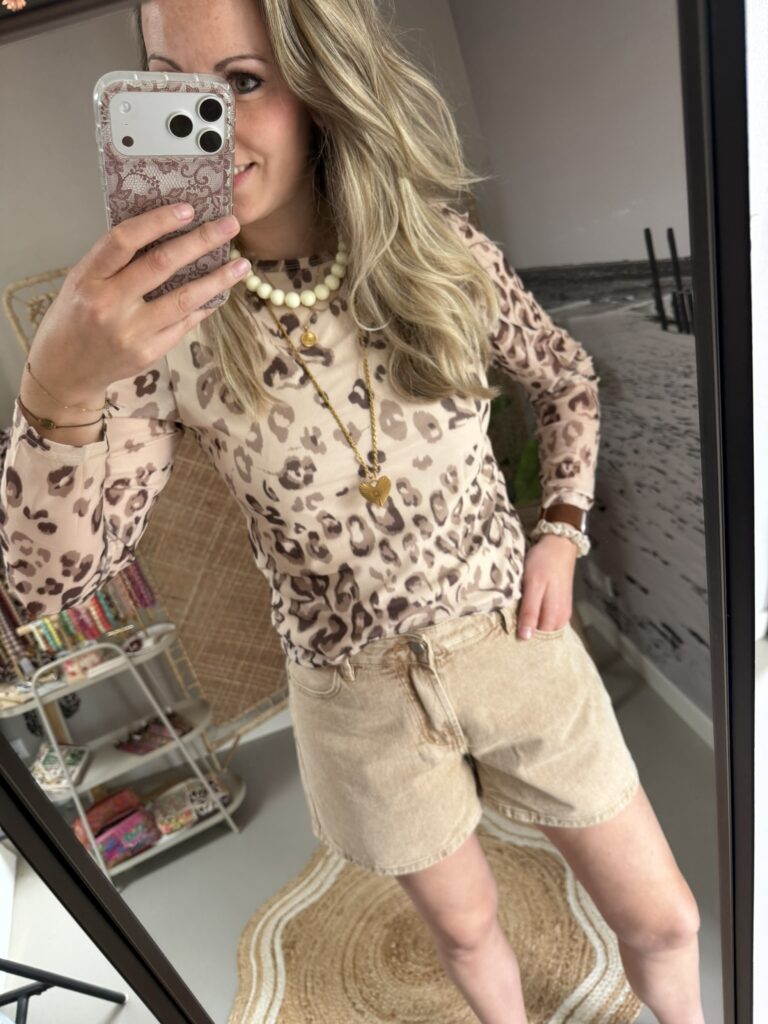 Mesh top – Beige/Bruin Panter