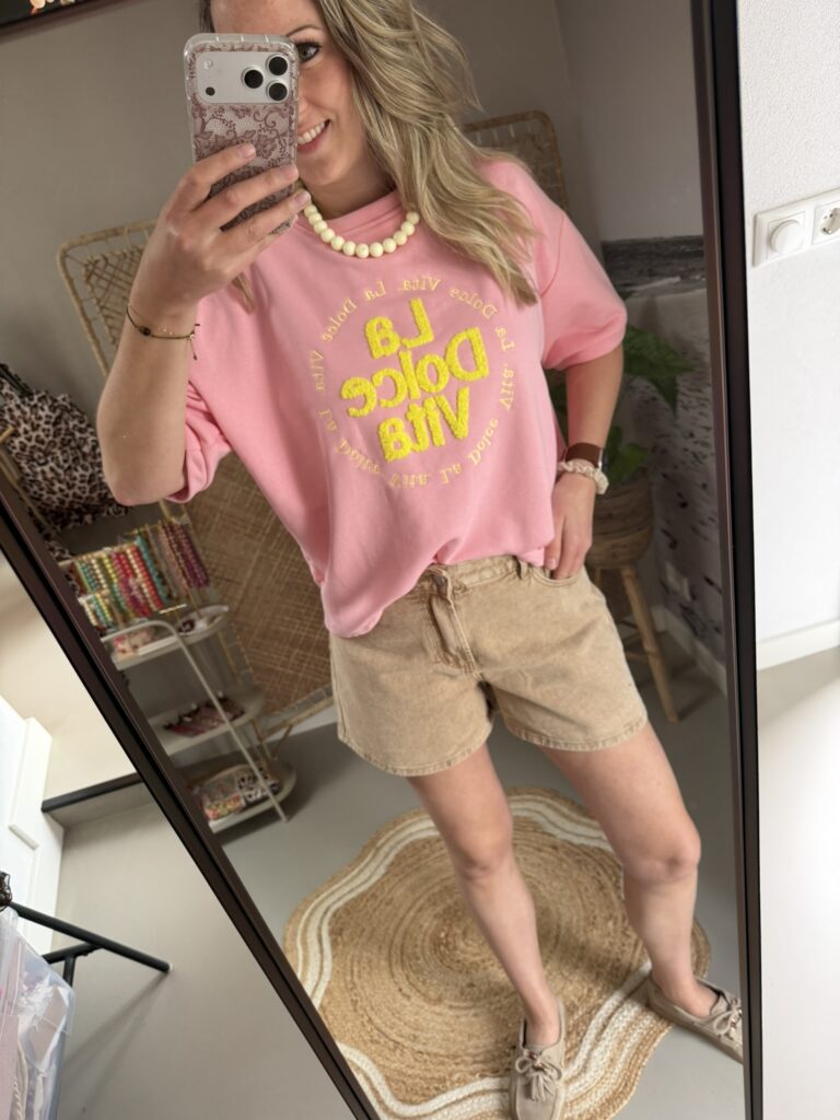 T-shirt/Sweater ‘La Dolce Vita’ – Roze/Geel