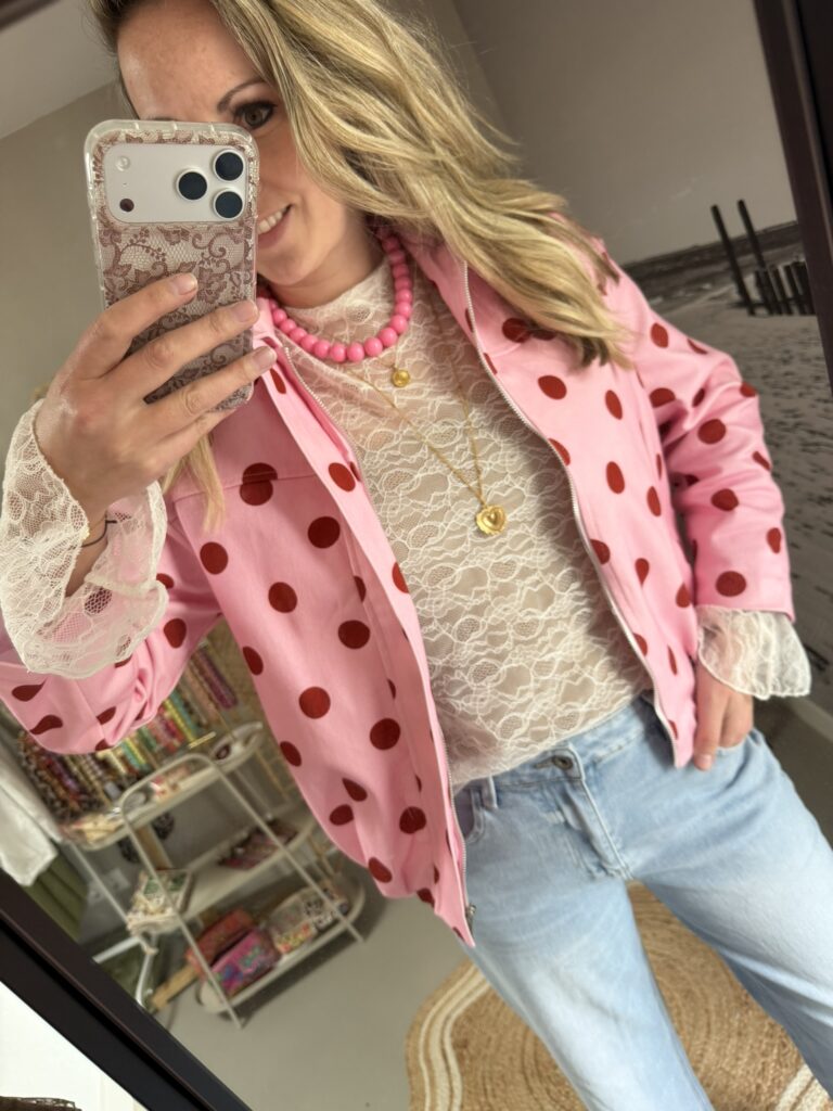 Spijkerjasje Dots – Bordeaux/Roze – Stippen