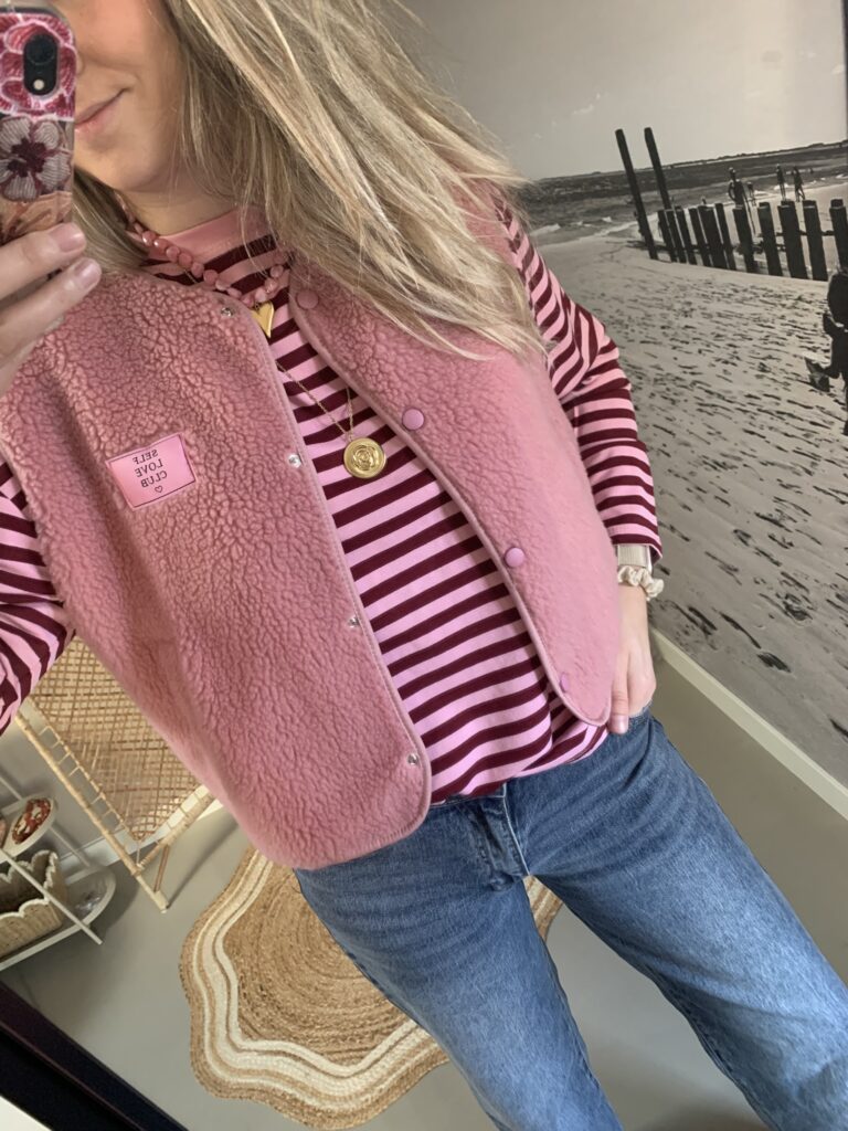 Teddy Gilet ‘Self Love Club’ – Licht Roze