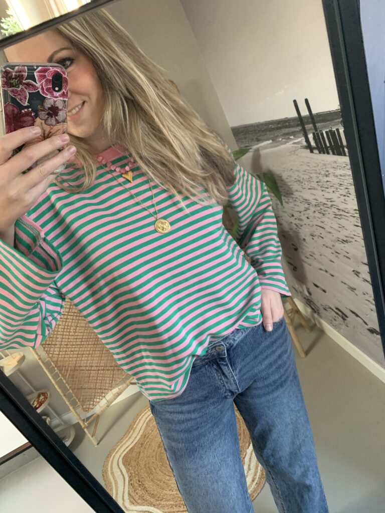 Streep Longsleeve – Groen/Licht Roze
