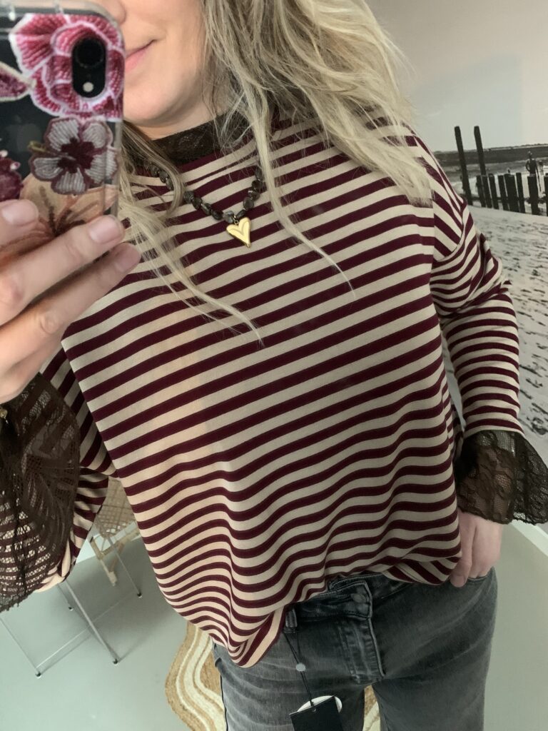 Streep Longsleeve – Bordeaux/Beige