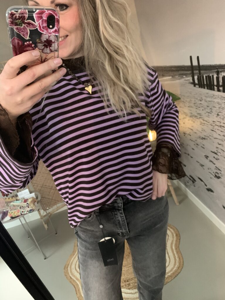 Streep Longsleeve – Paars/Bruin