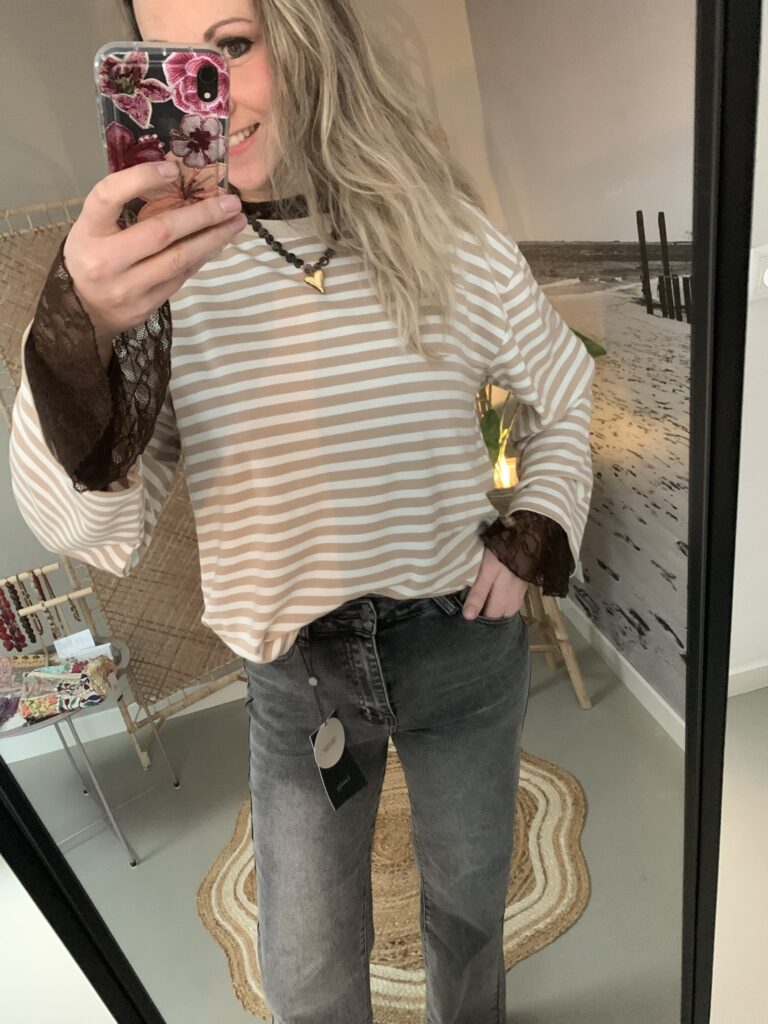 Streep Longsleeve – Lichtbruin/Beige
