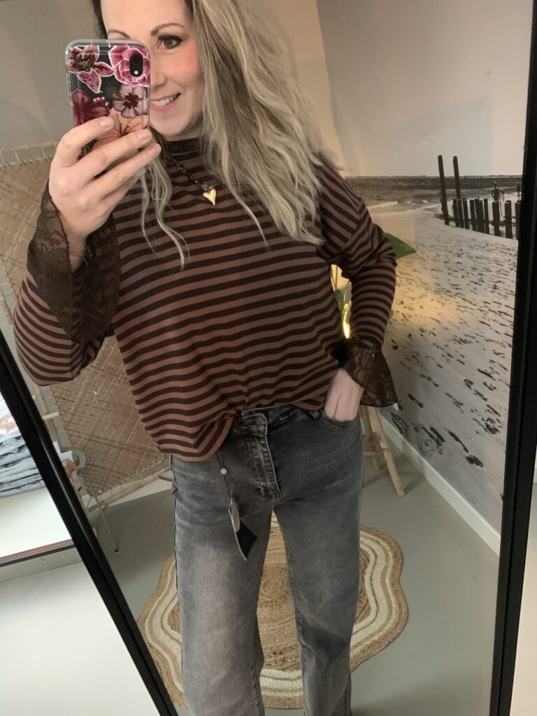 Kantentop met trompetmouwtje – Bruin