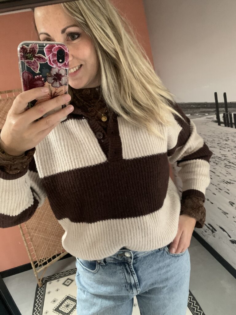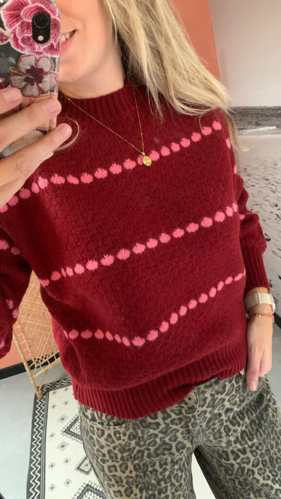 Trui ‘Stipjes’ – Bordeaux/Roze