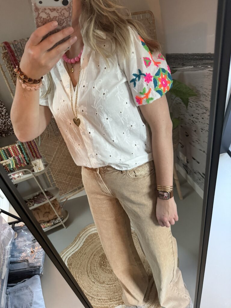 Blouse wit – Broderie mouwtje – Wit