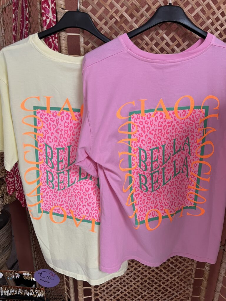 T-shirt ‘Ciao Bella’ – Geel en Roze
