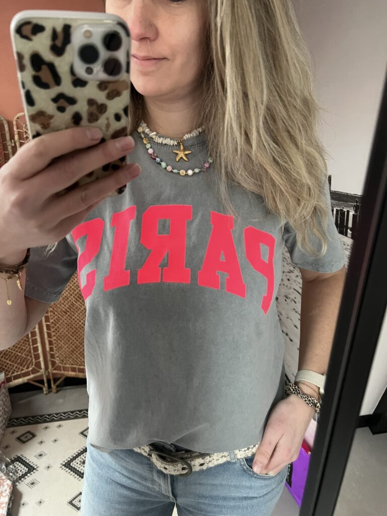 T-shirt ‘Paris’ – Licht grijs/Roze