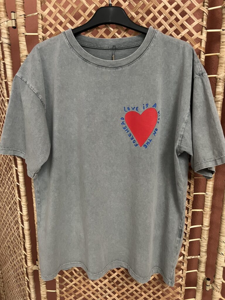 T-shirt ‘Love’ – Lichtgrijs/Rood