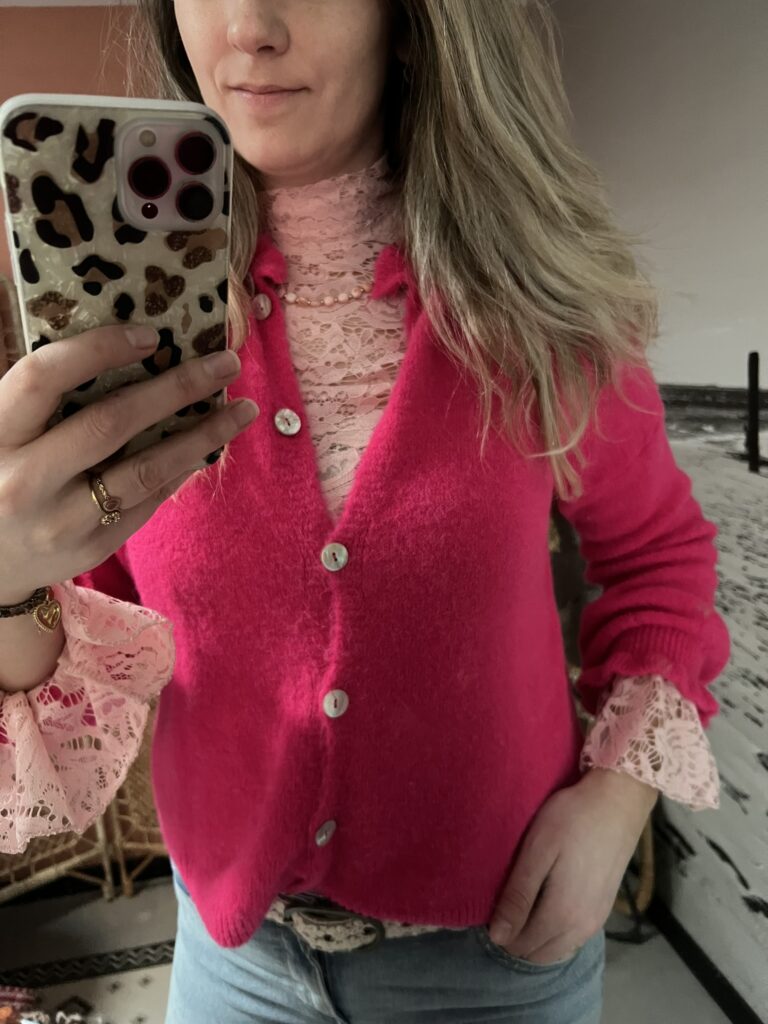 Lace kanten top – Oudroze (uitlopend mouwtje)