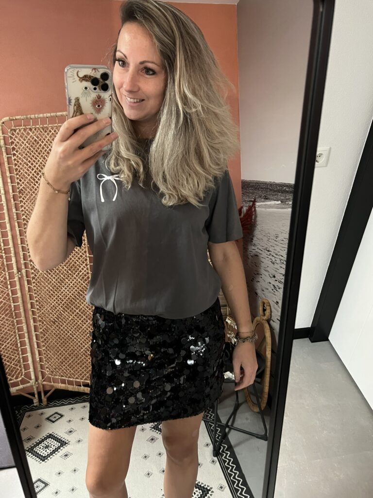 Glitter setje; Top + Rokje zwart