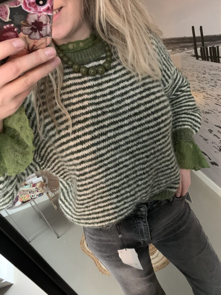 SALEStreep trui – Lichtbruin/Taupe/Beige/Roze