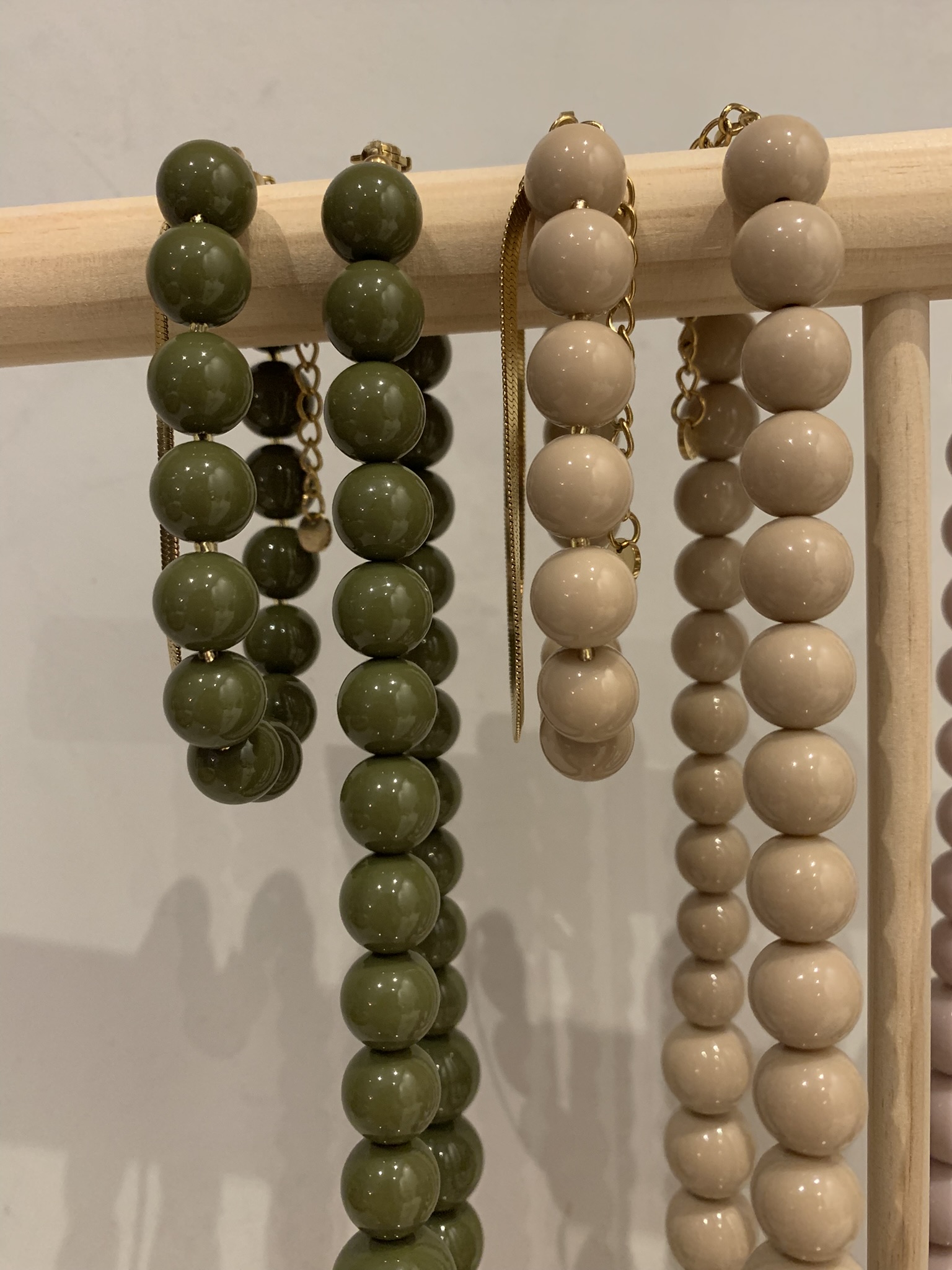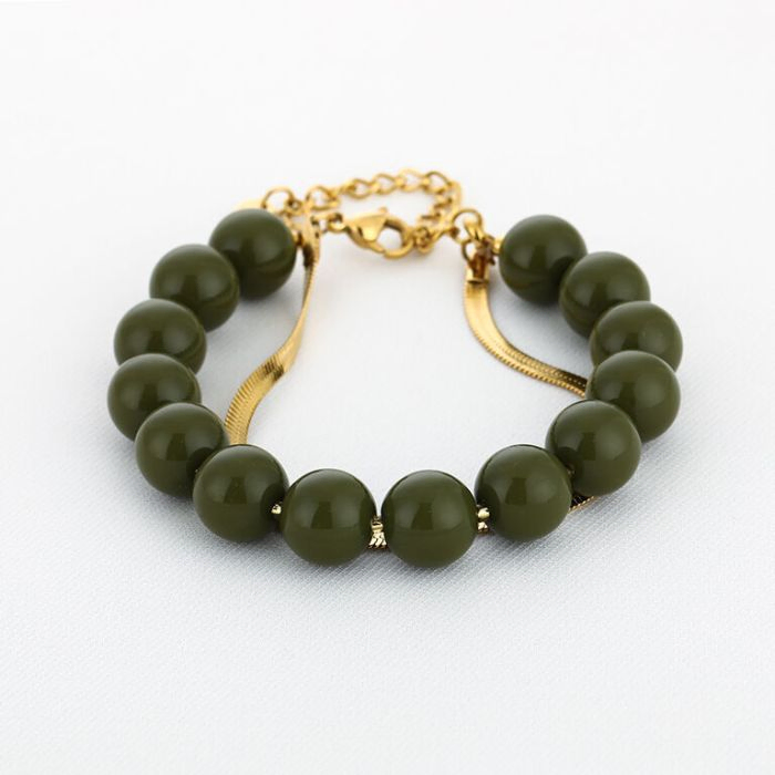 Armbandje ronde kralen – Taupe/Groen