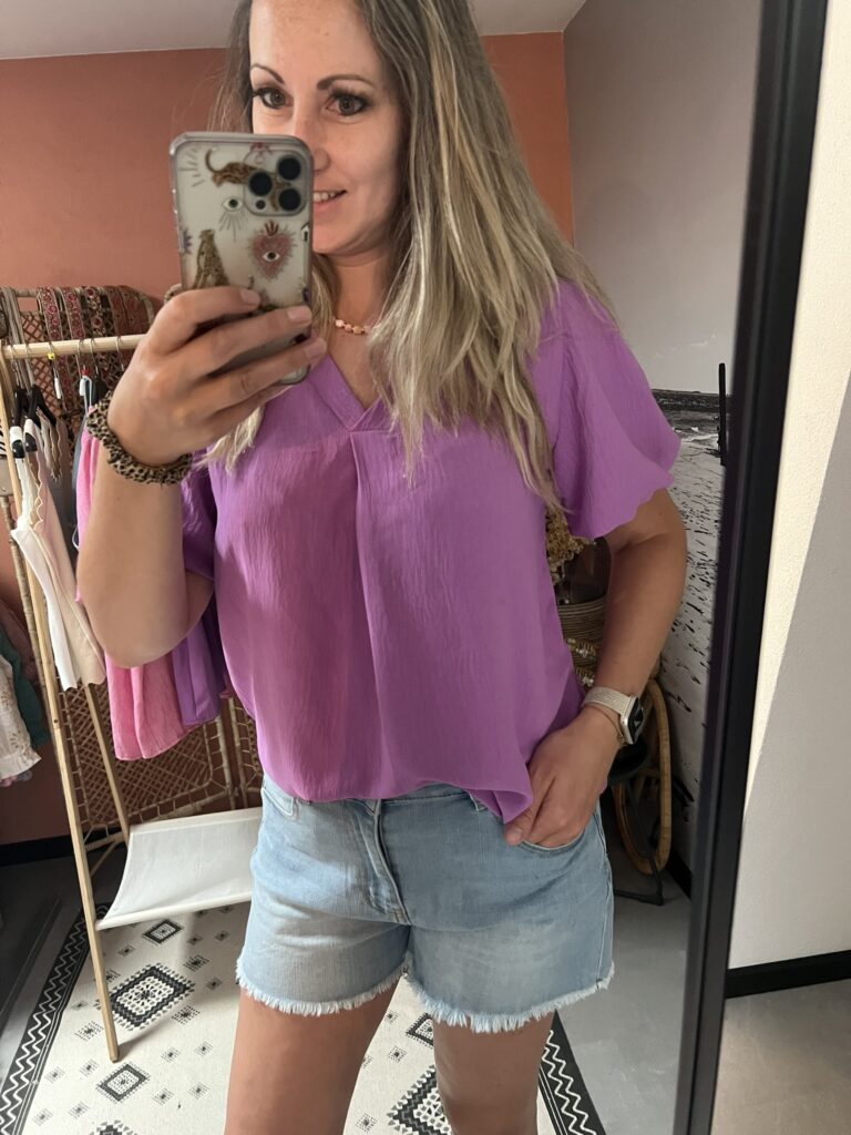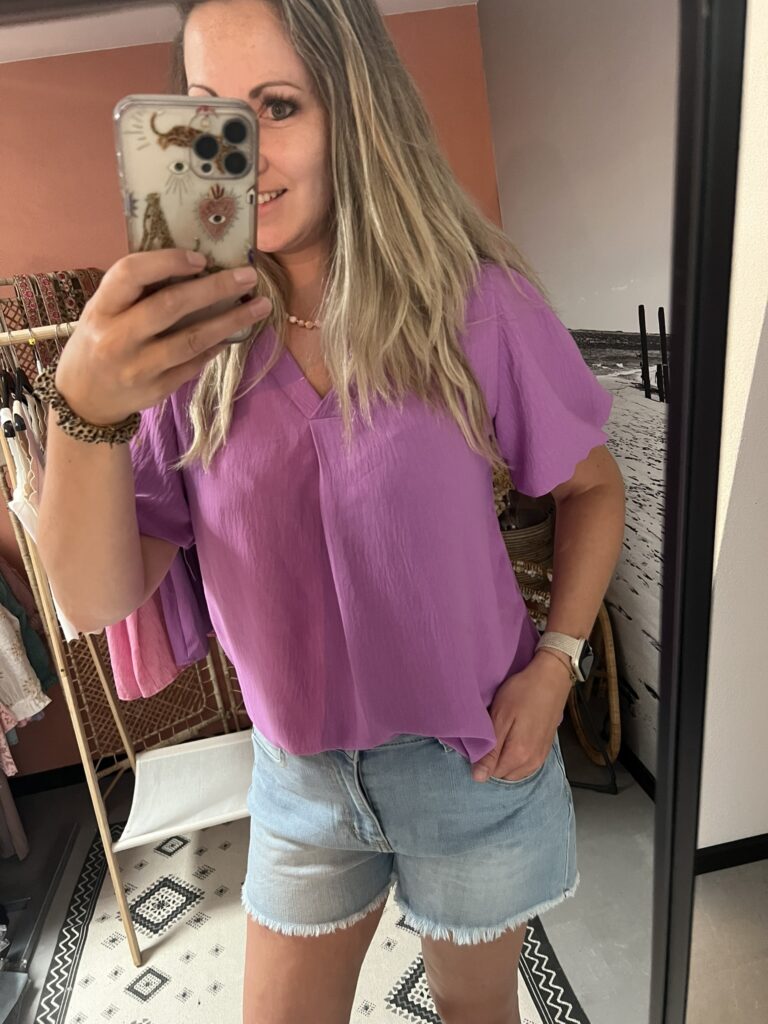 Oversized blouse, heerlijk dun stofje met 3/4 pofmouwtjes.