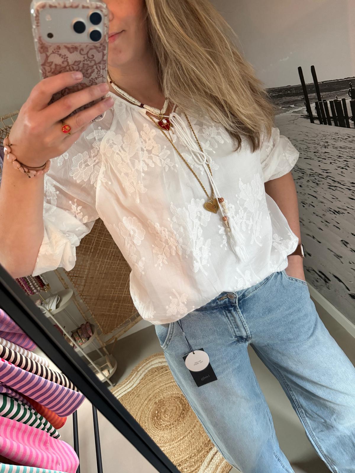Broderie set – Blouse & short – Wit