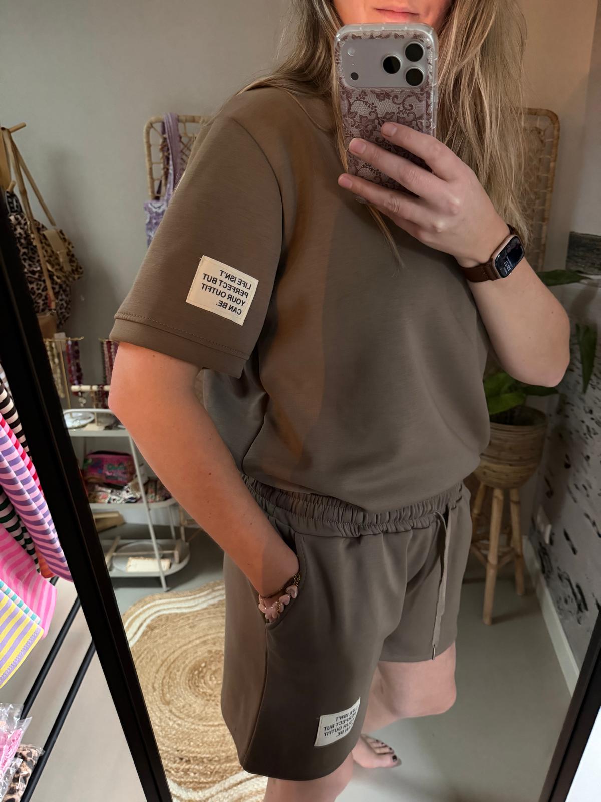 Comfy set oversized 'Perfect' - Taupe aantal