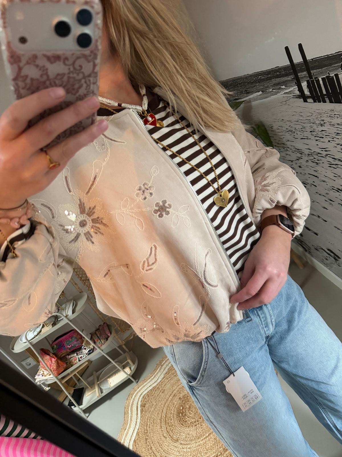 Geborduurd jasje ‘Flower’ – Beige met gouden pailletjes