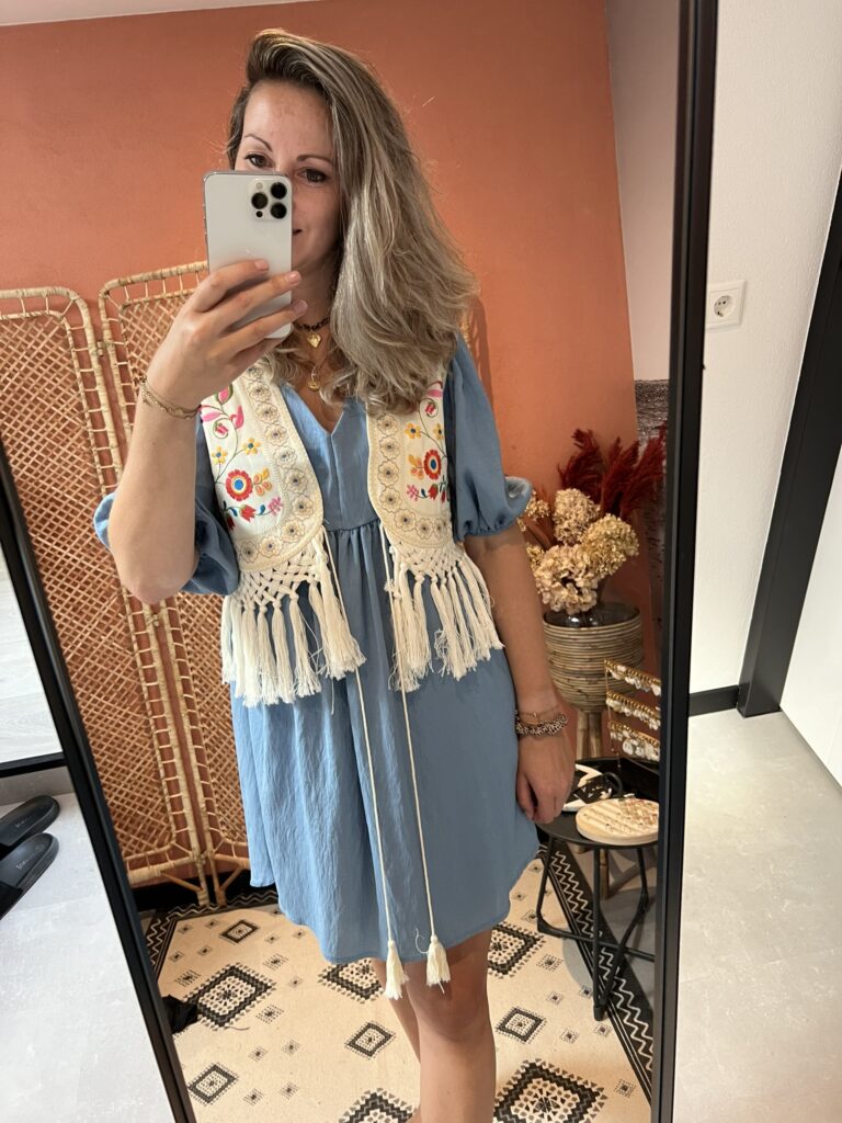 Een basic jurkje, speciaal maken? Daar is dit giletje heel geschikt voor!