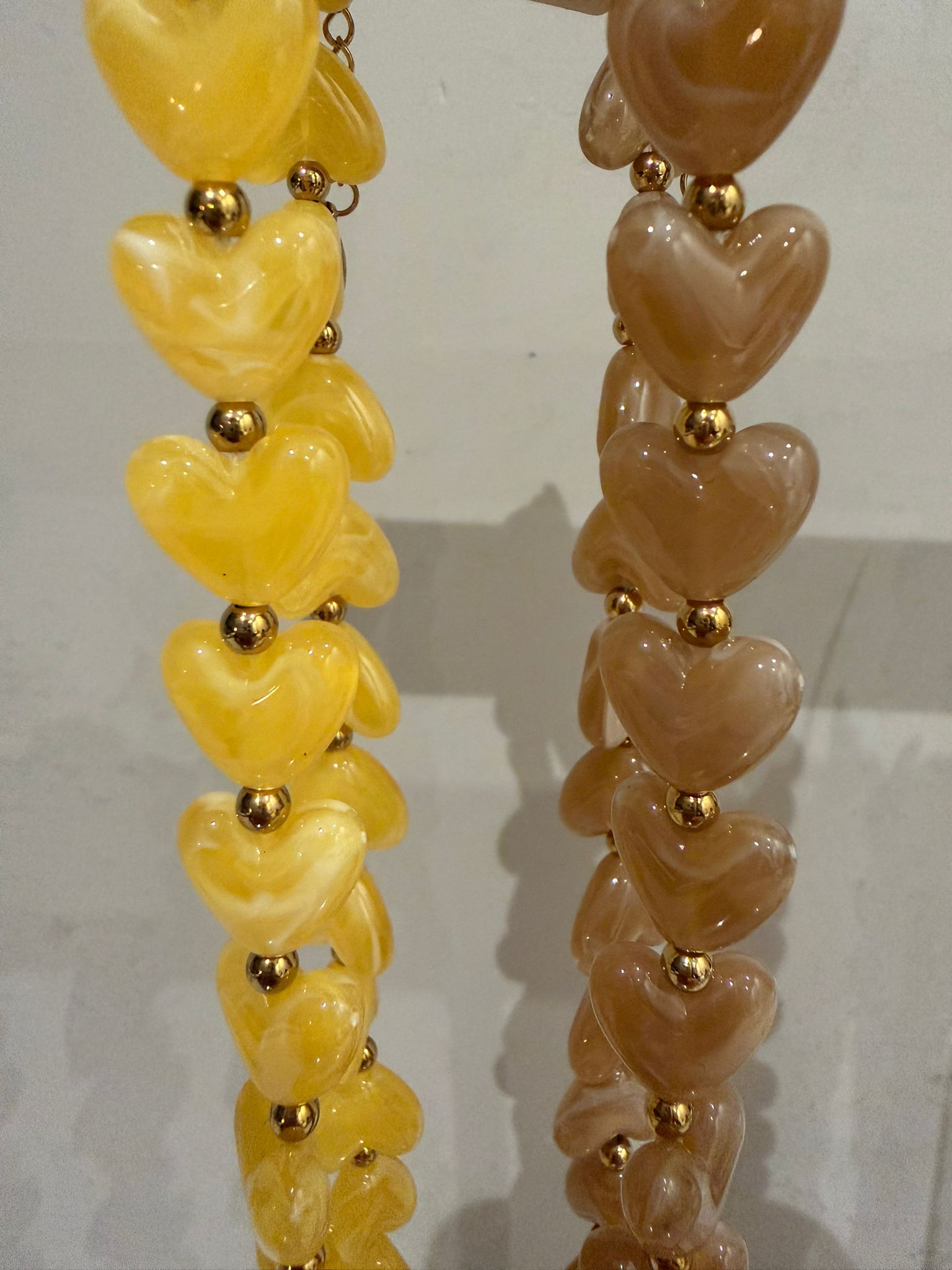 Hartjes ketting met gouden accenten – Geel en Taupe