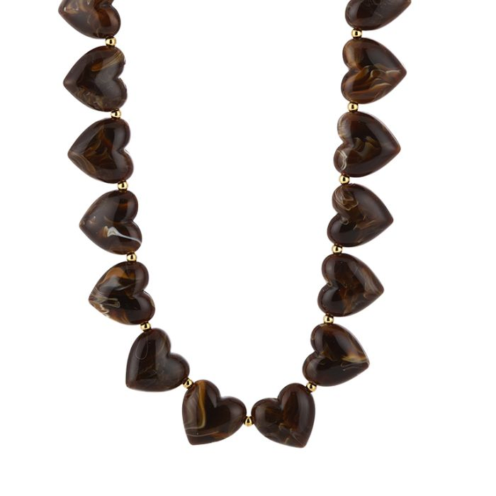 Ketting hartjes, grote kralen – Bruin