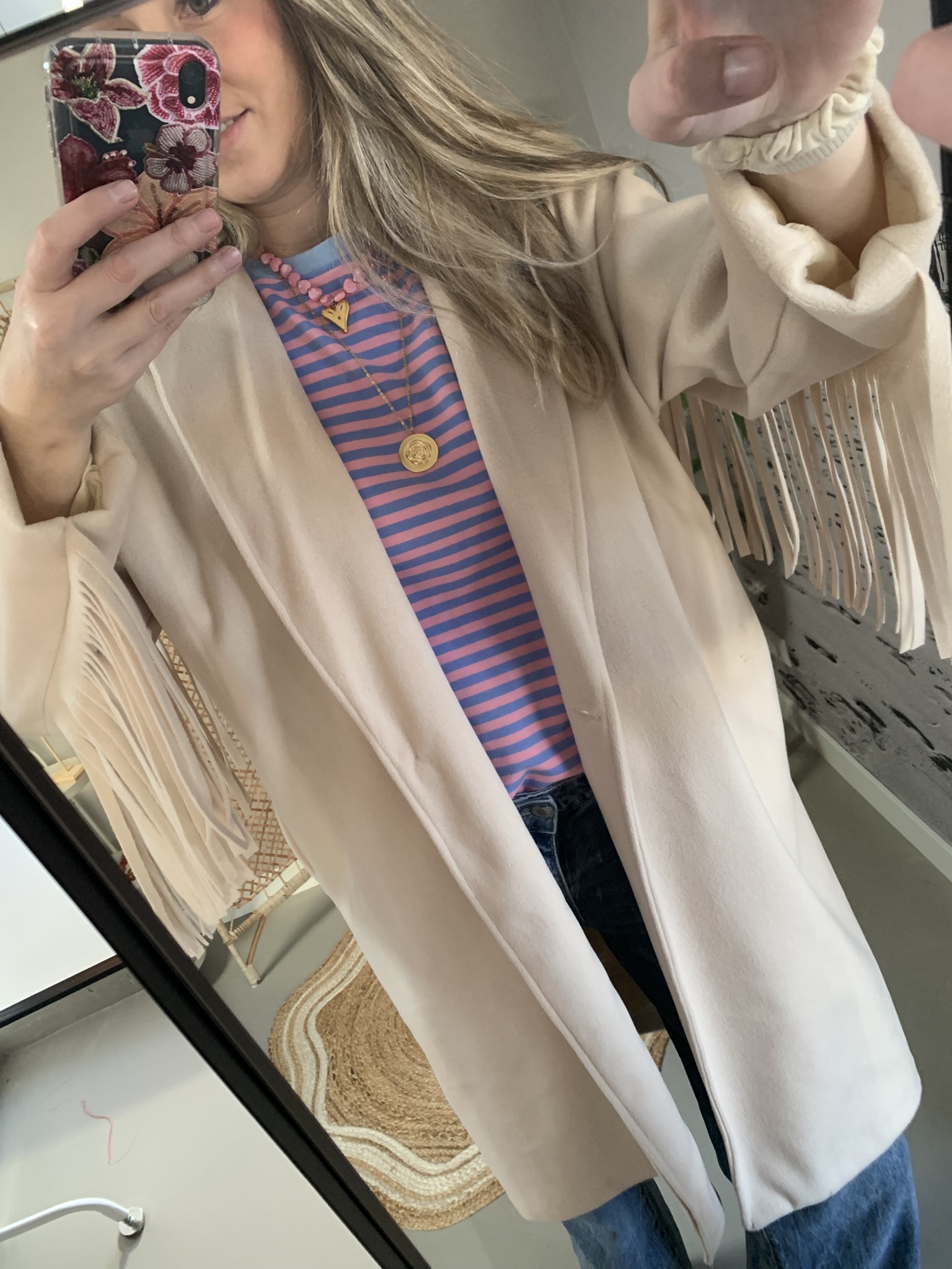 Prachtige tussenjas met hippe franjes