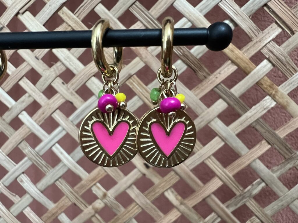 Oorringen ‘Hartje dubbel’ – Goud/wit