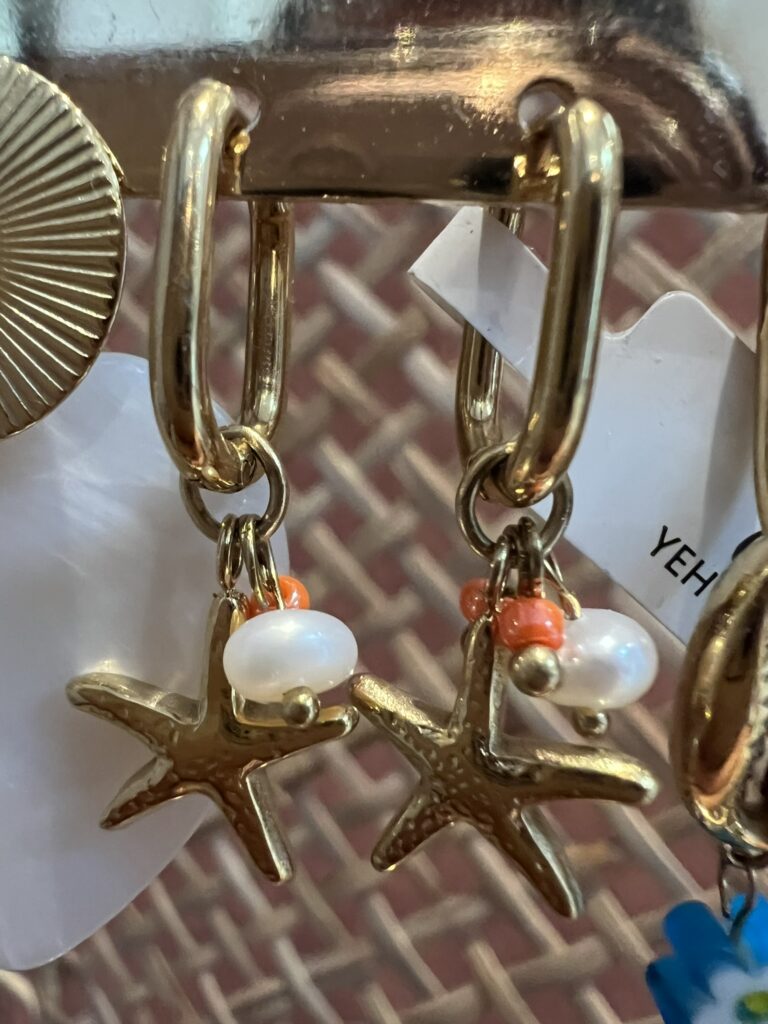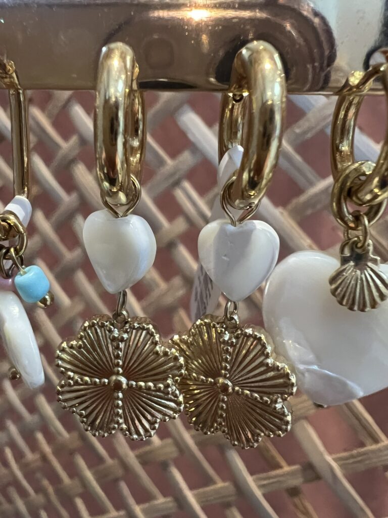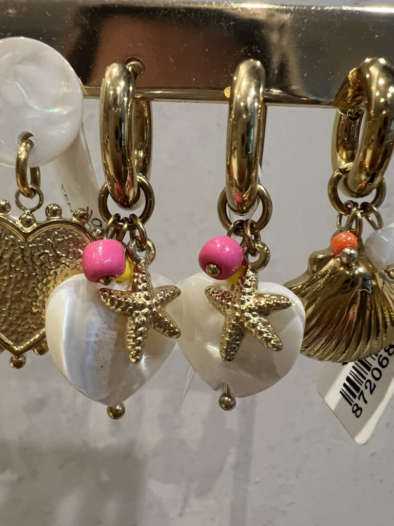 Oorringen ‘Hartje zeester’ – Wit/goud/multikleur