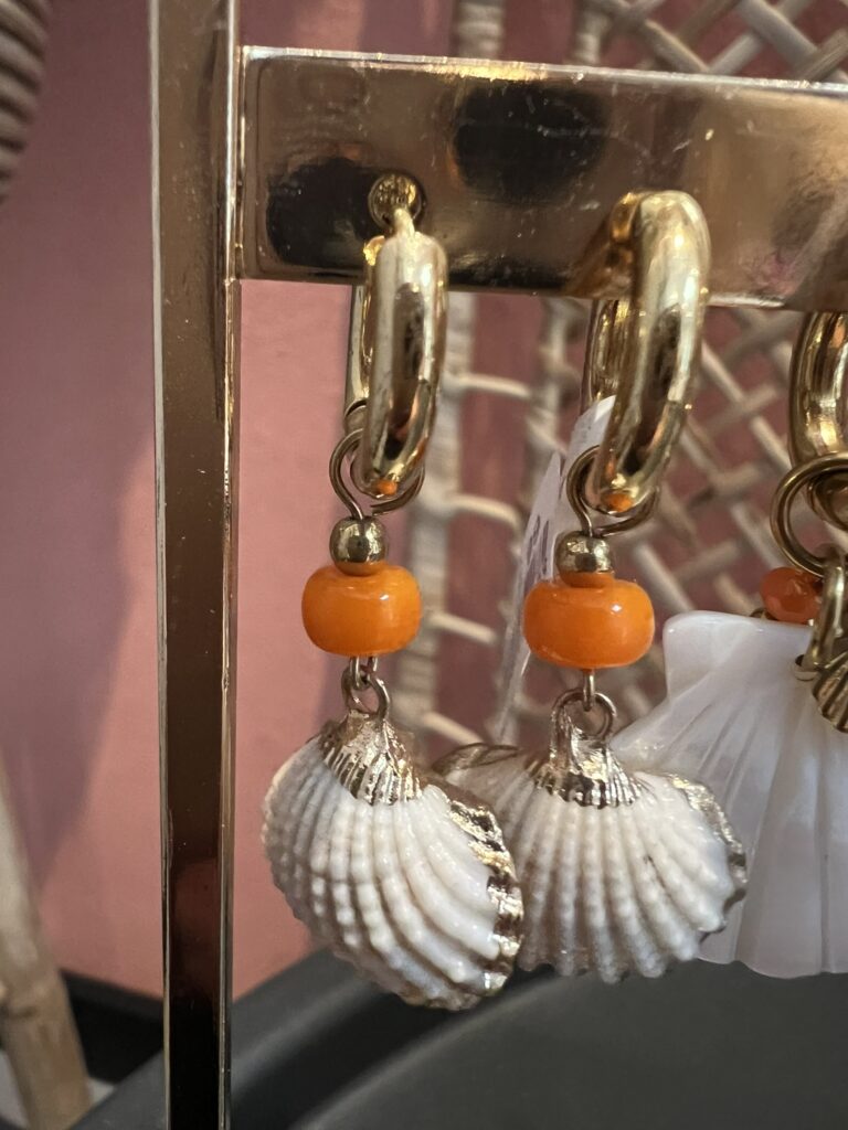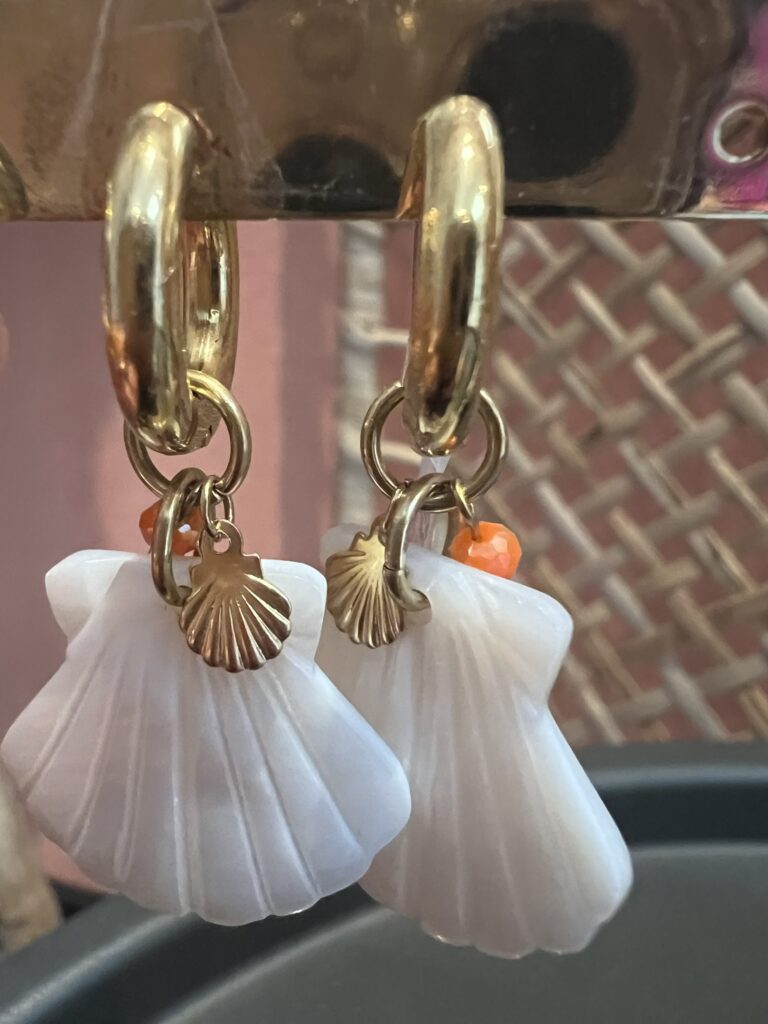 Oorringen ‘Schelp’ – Goud/wit/oranje