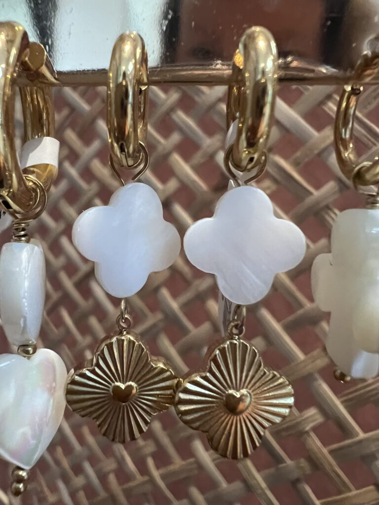 Oorringen ‘Klavertje/hartje’ – Wit/goud