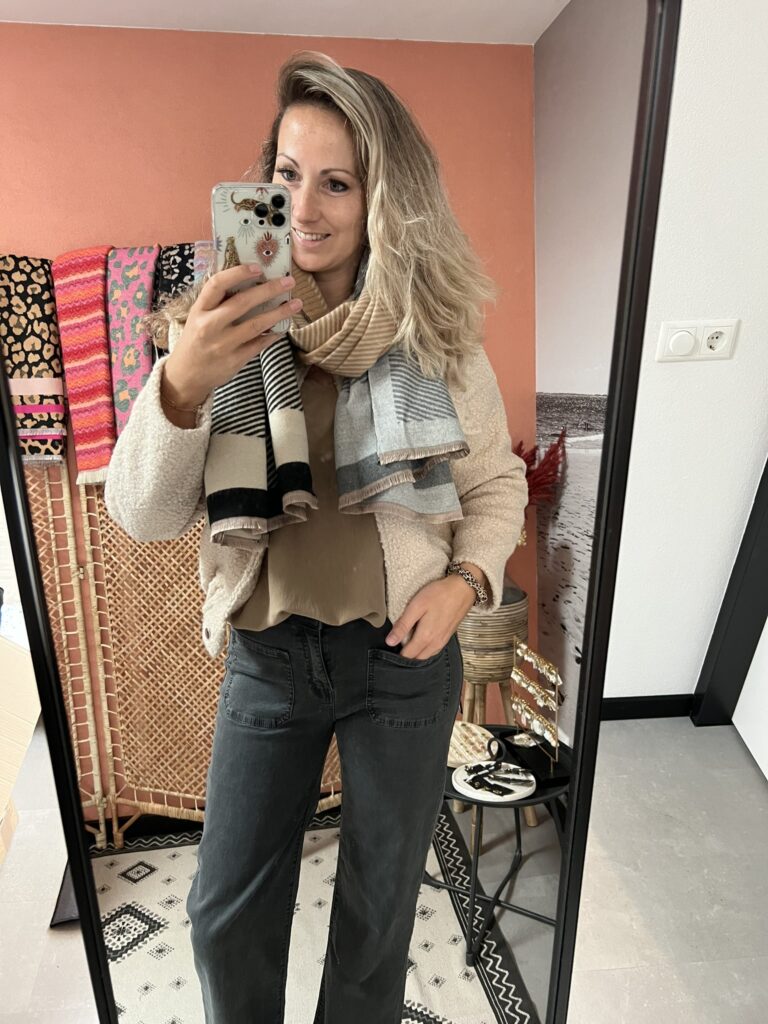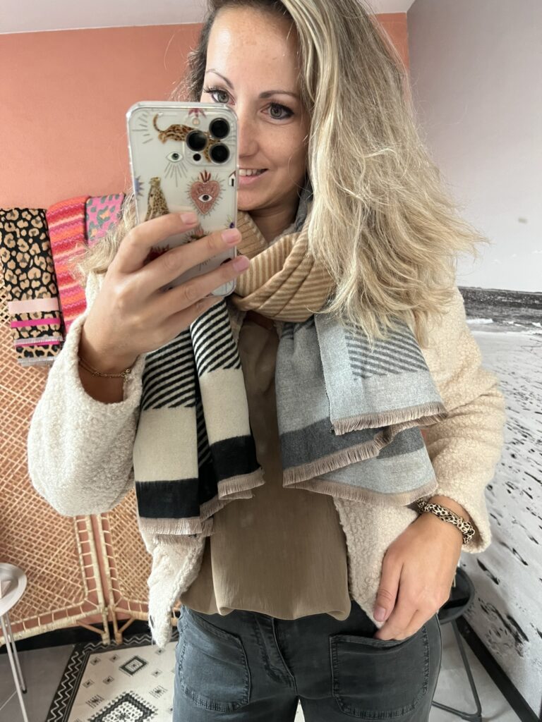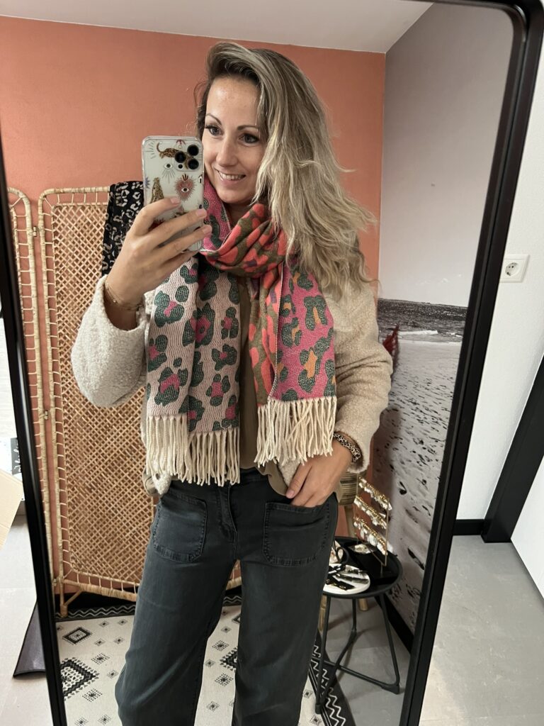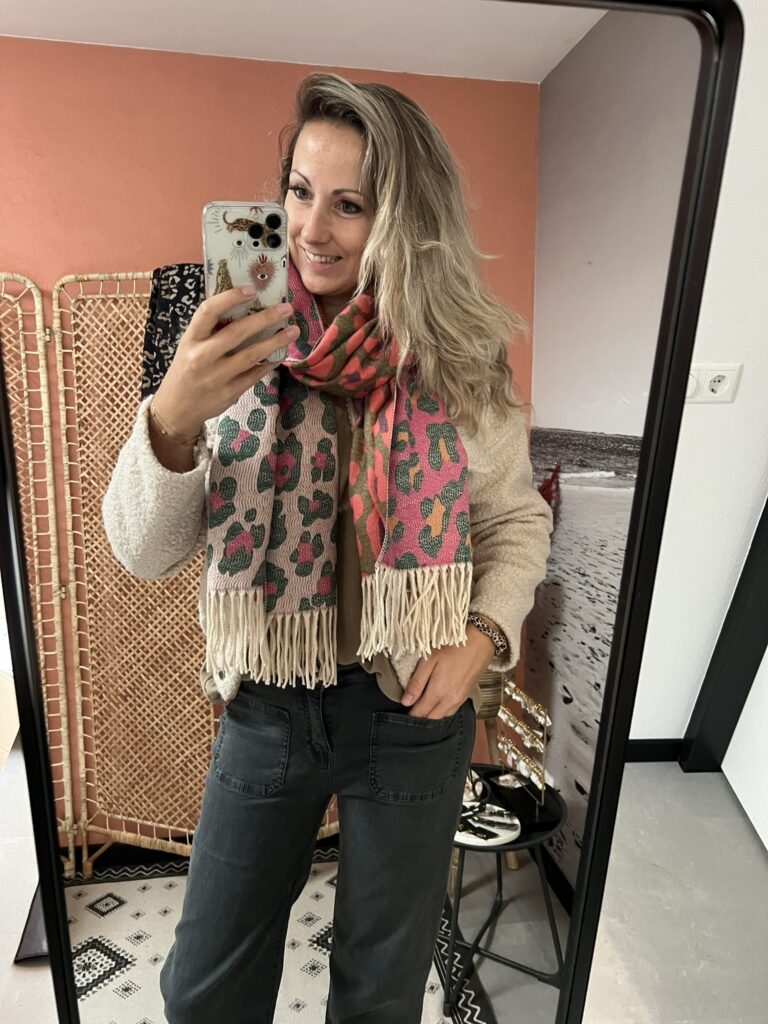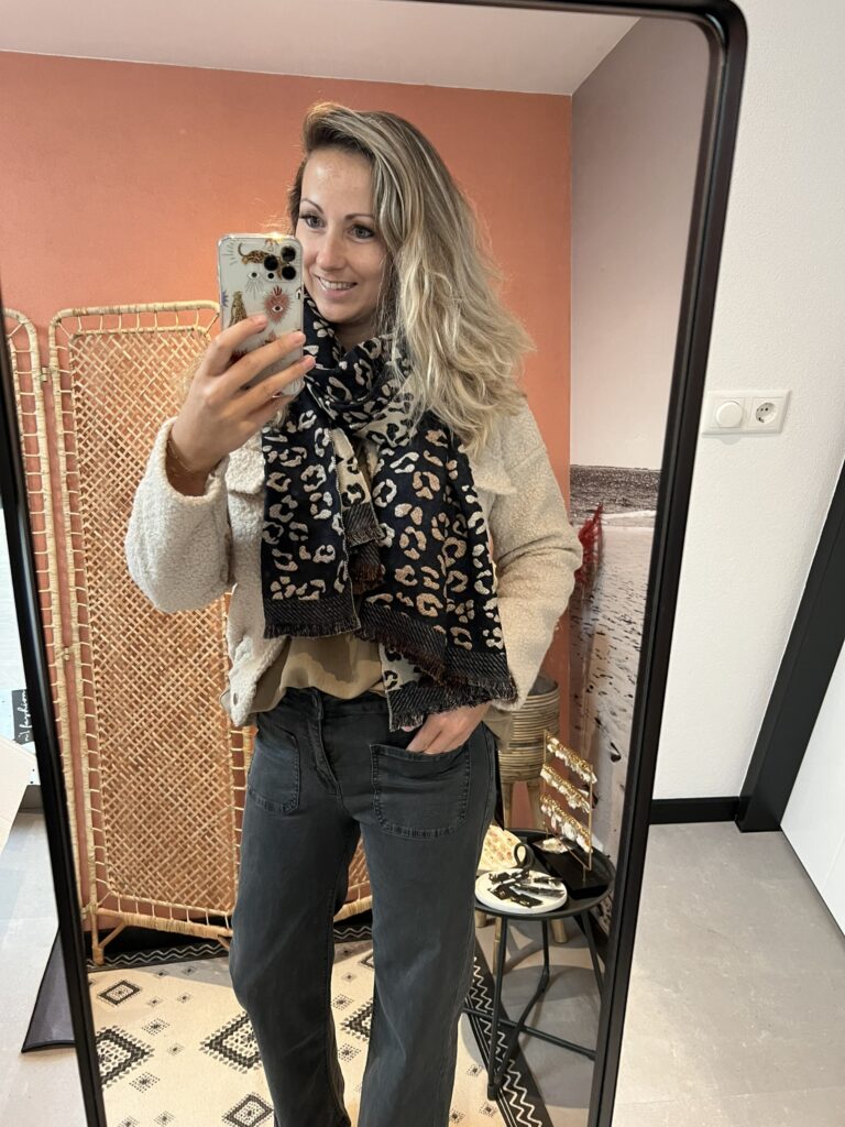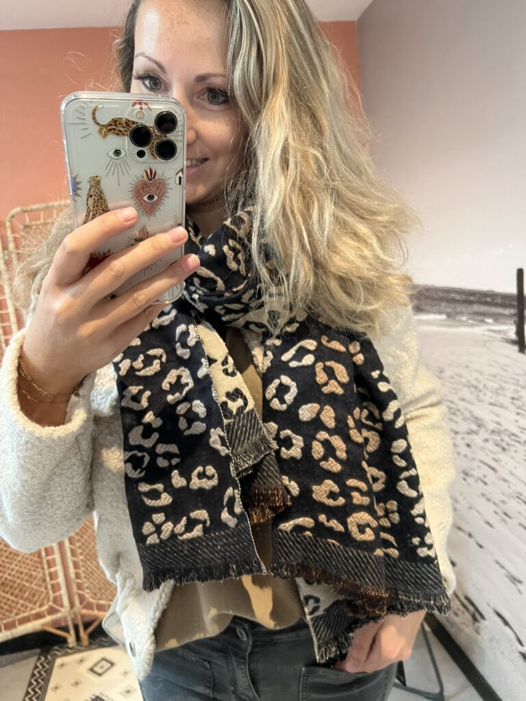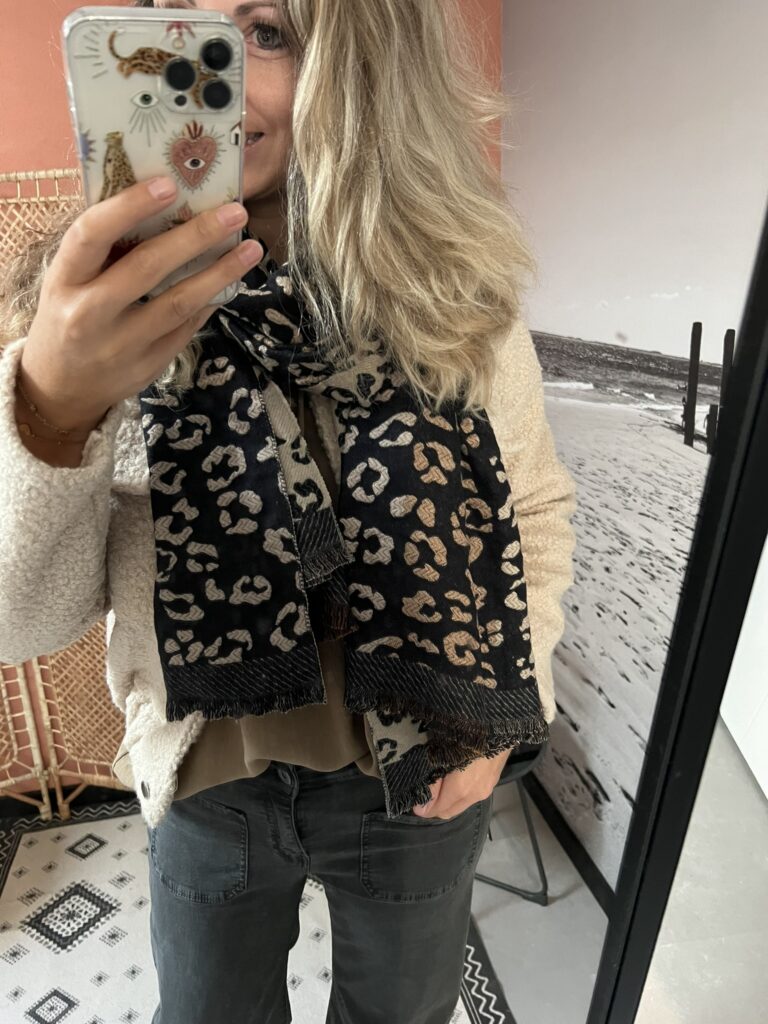 Sjaal – Panter zwart/beige