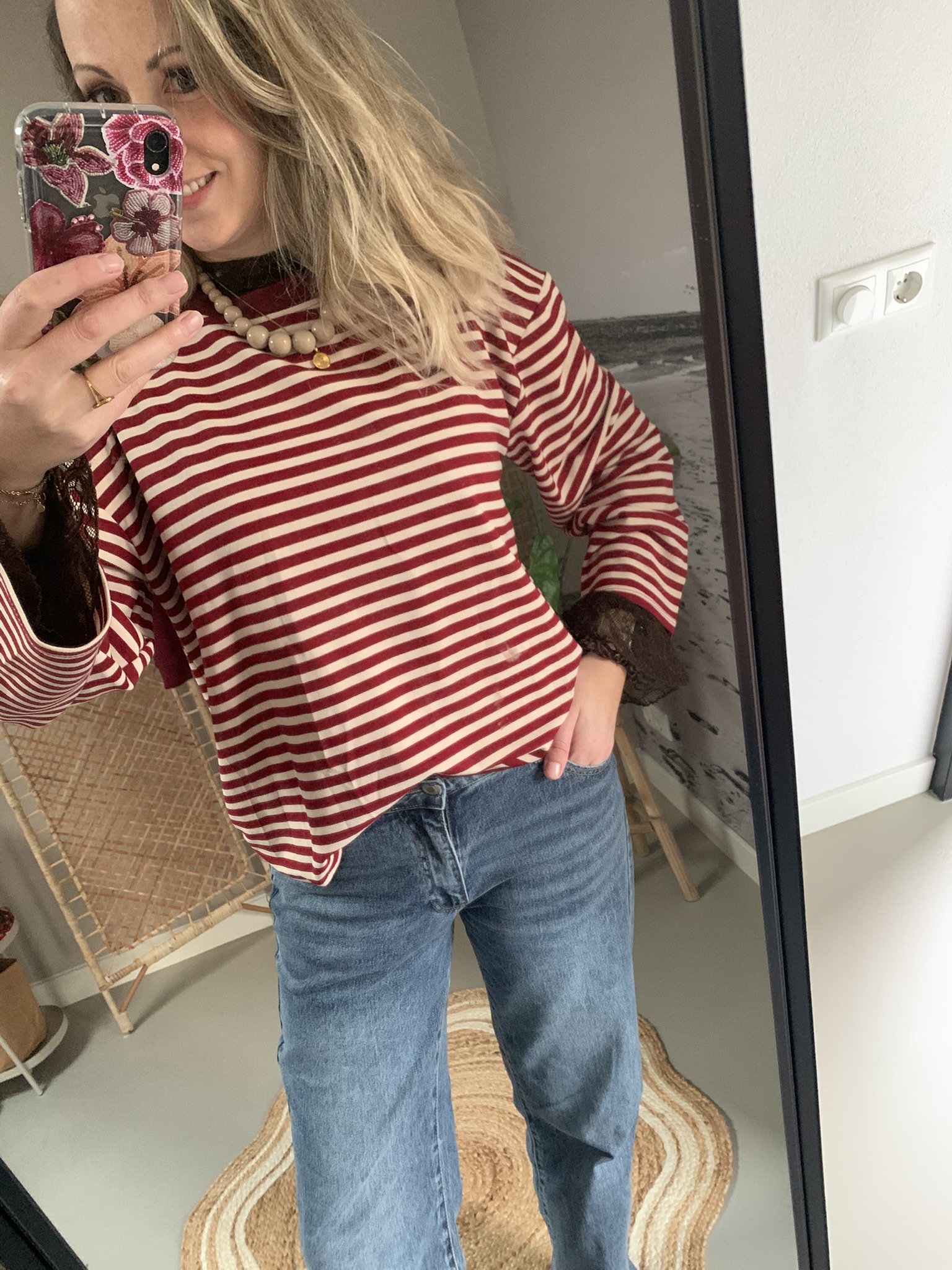 Streep Longesleeve – Bordeaux/Créme