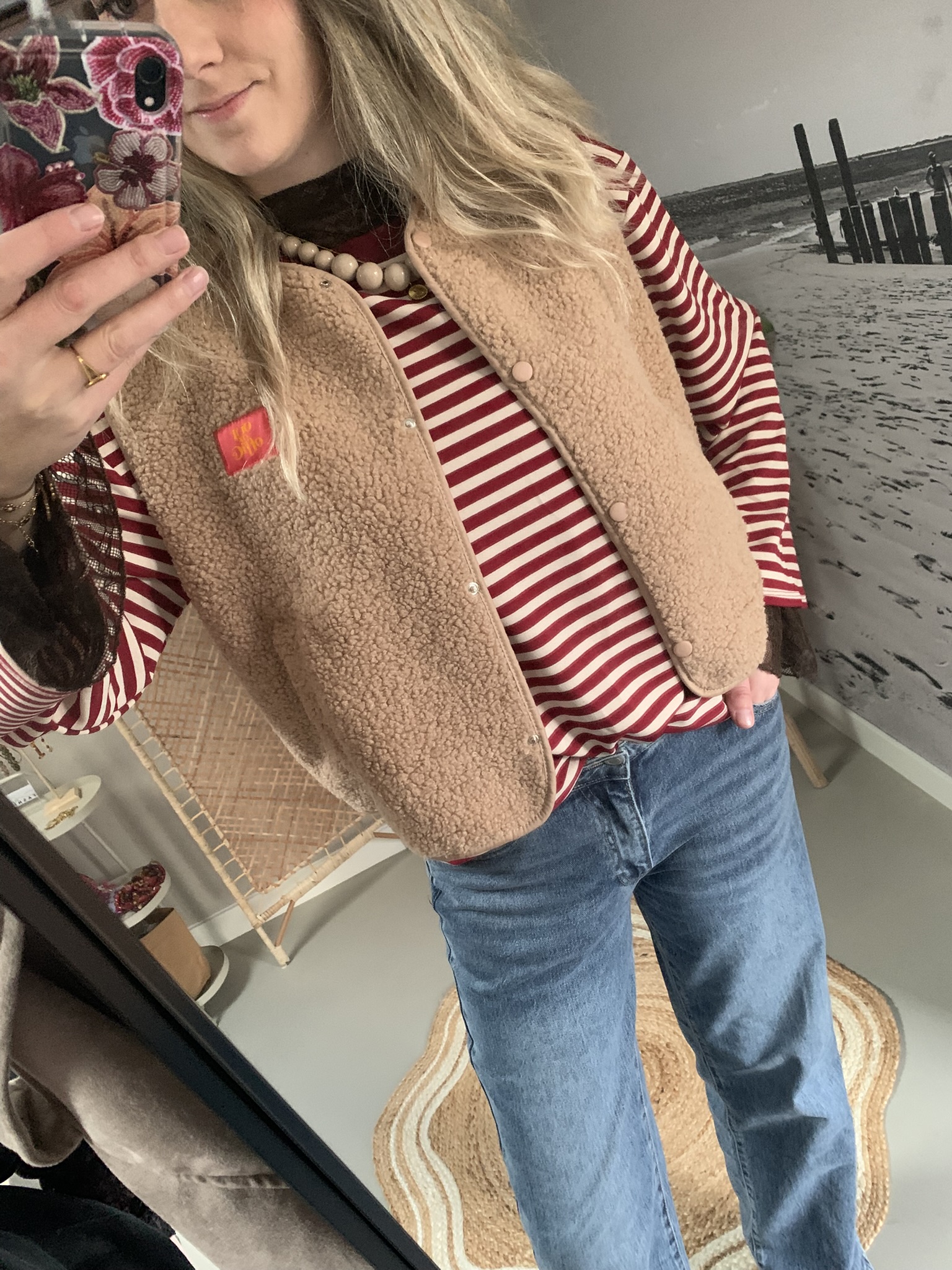 * Teddy gilet in bruin of beige
