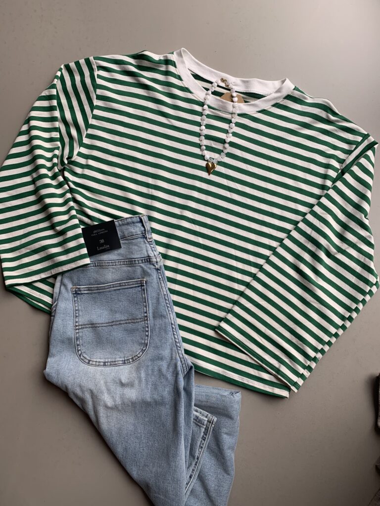 Streep Longsleeve – Groen/Wit