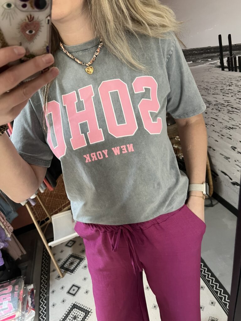 T-shirt ‘Paris’ – Licht grijs/Roze