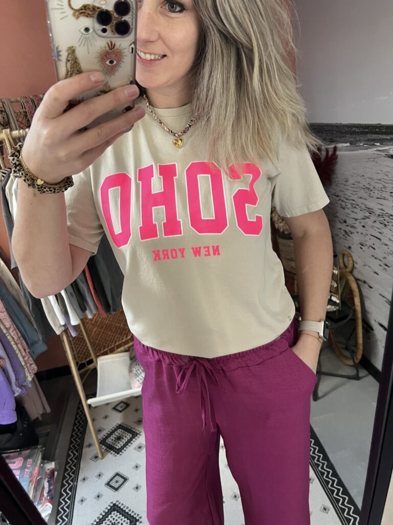 T-shirt ‘Ciao Bella’ – Geel en Roze