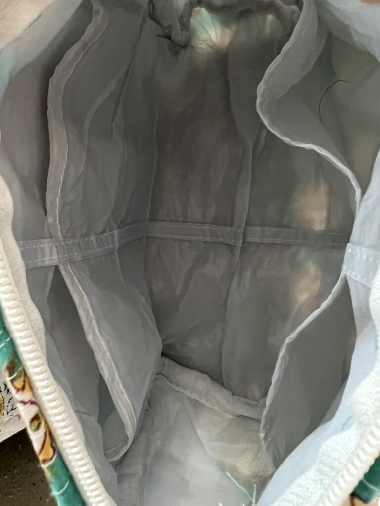 Materiaal: katoen, binnenkant is geplastificeerd en afneembaar met een doekje.