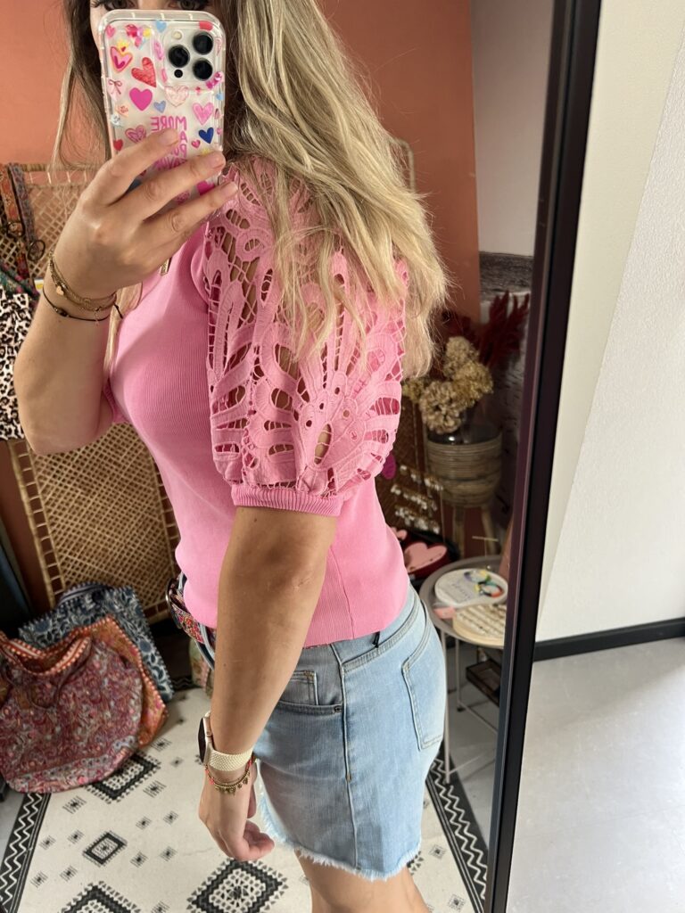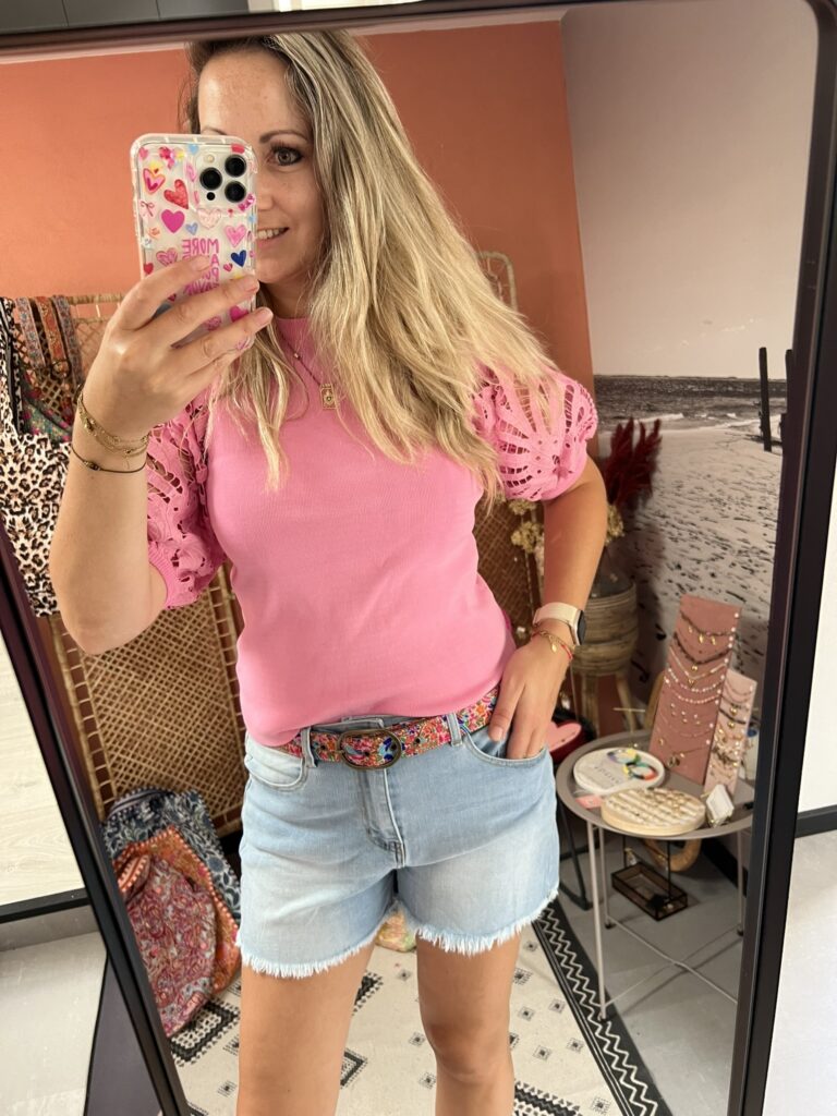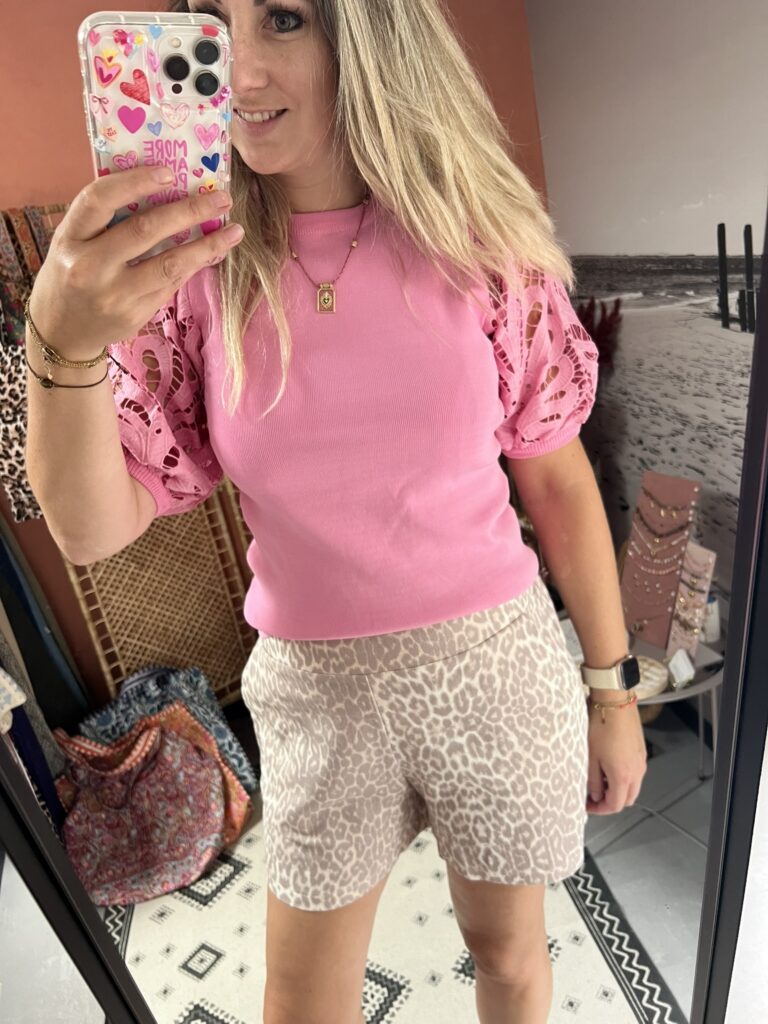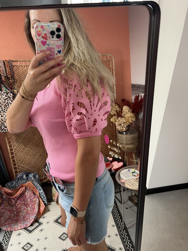 Deze top heeft prachtige pofmouwtjes. Gemaakt van een stretch stof. Een fijne draagbare top die makkelijk te combineren is!