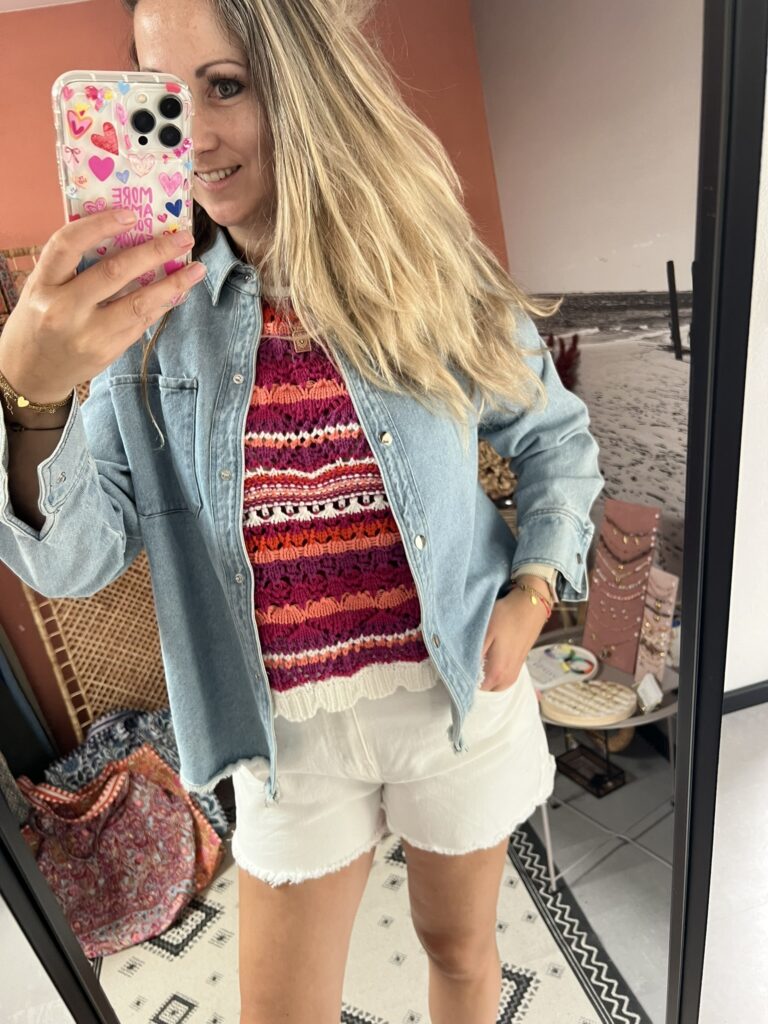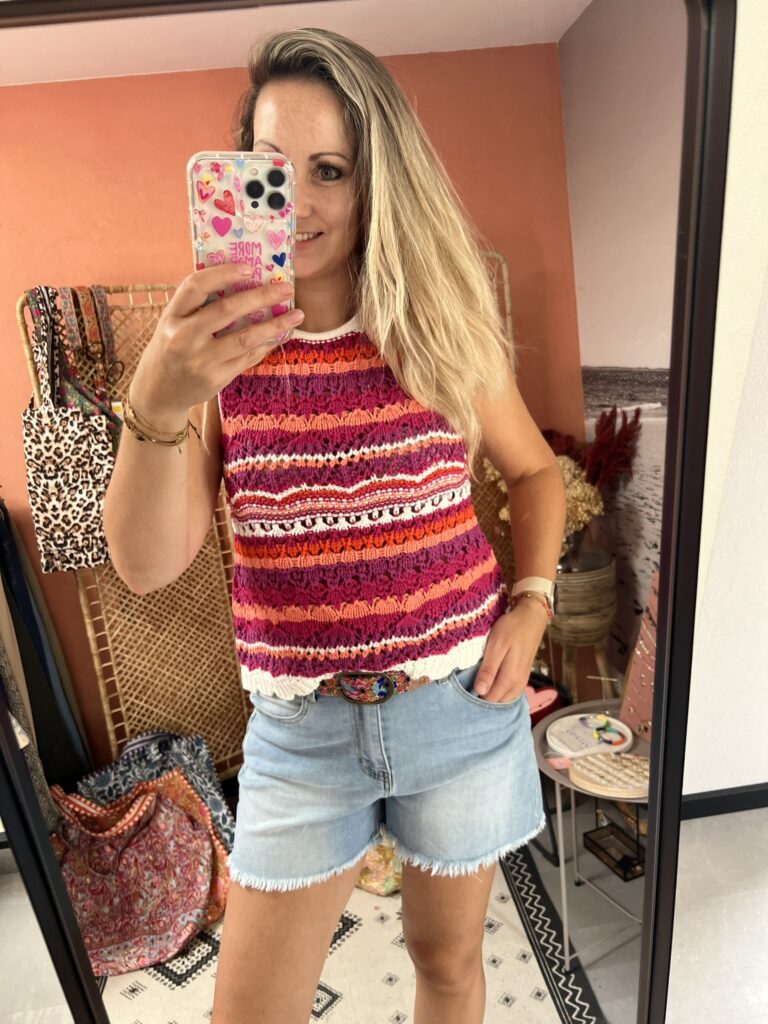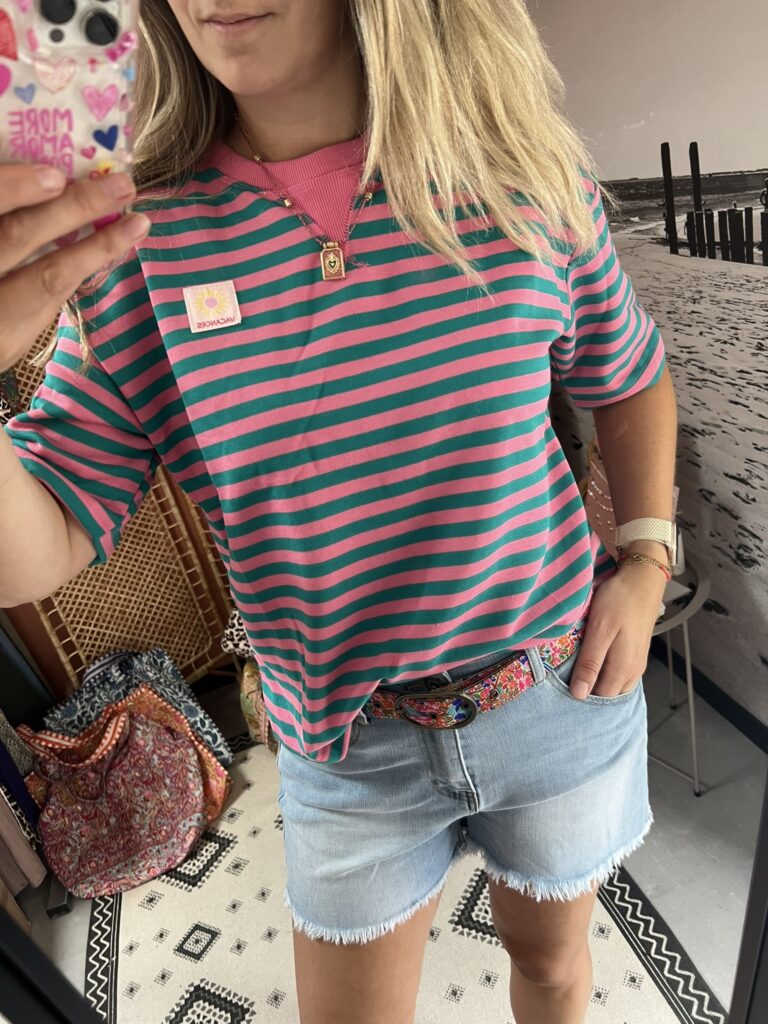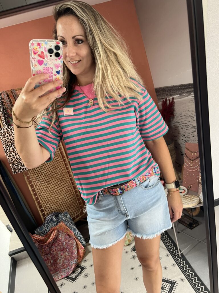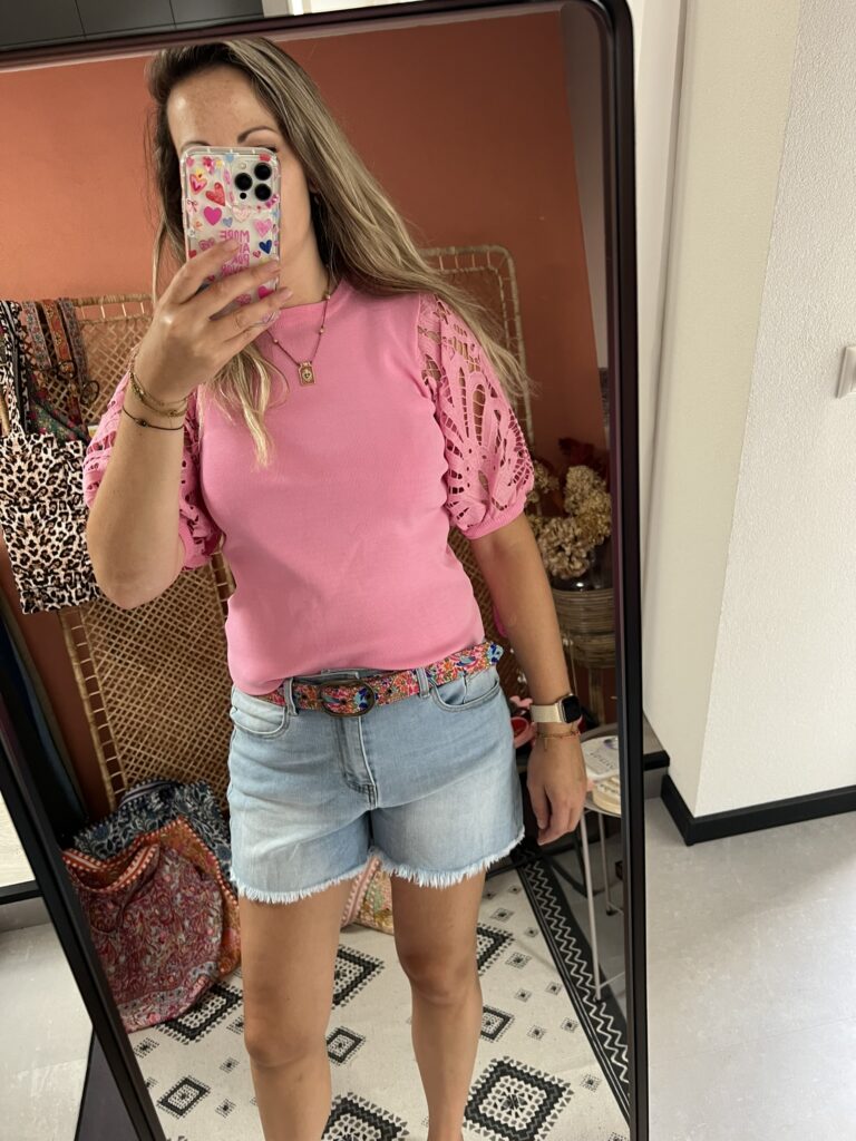 Deze top heeft prachtige pofmouwtjes. Gemaakt van een stretch stof. Een fijne draagbare top die makkelijk te combineren is!