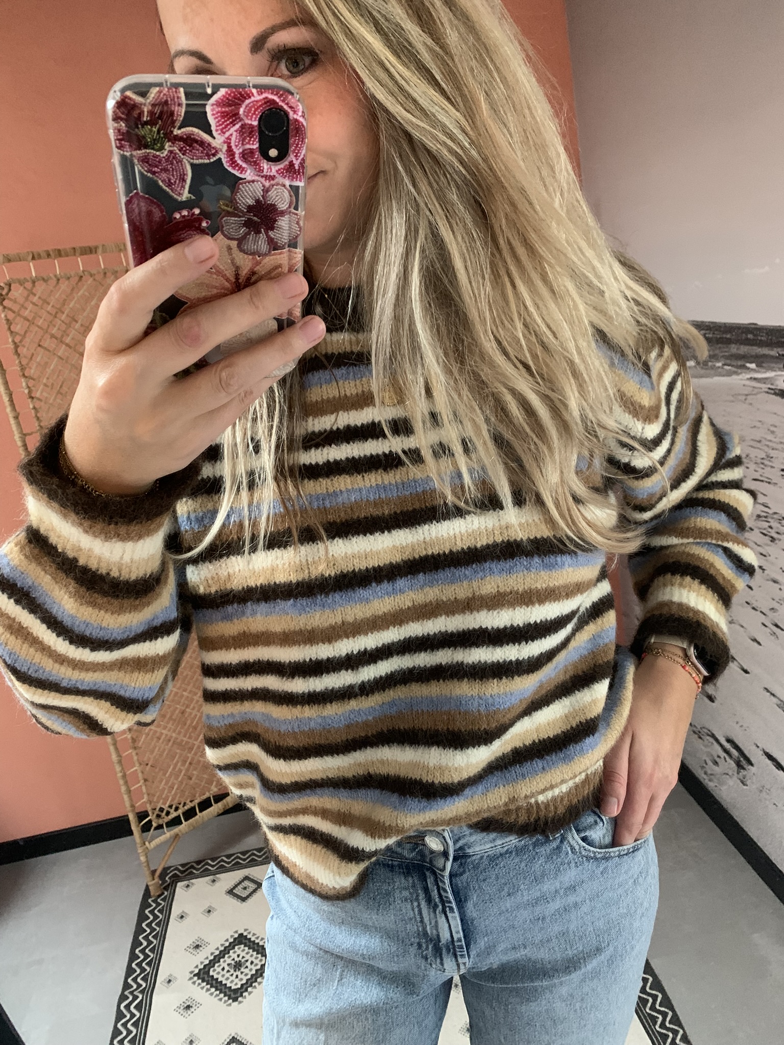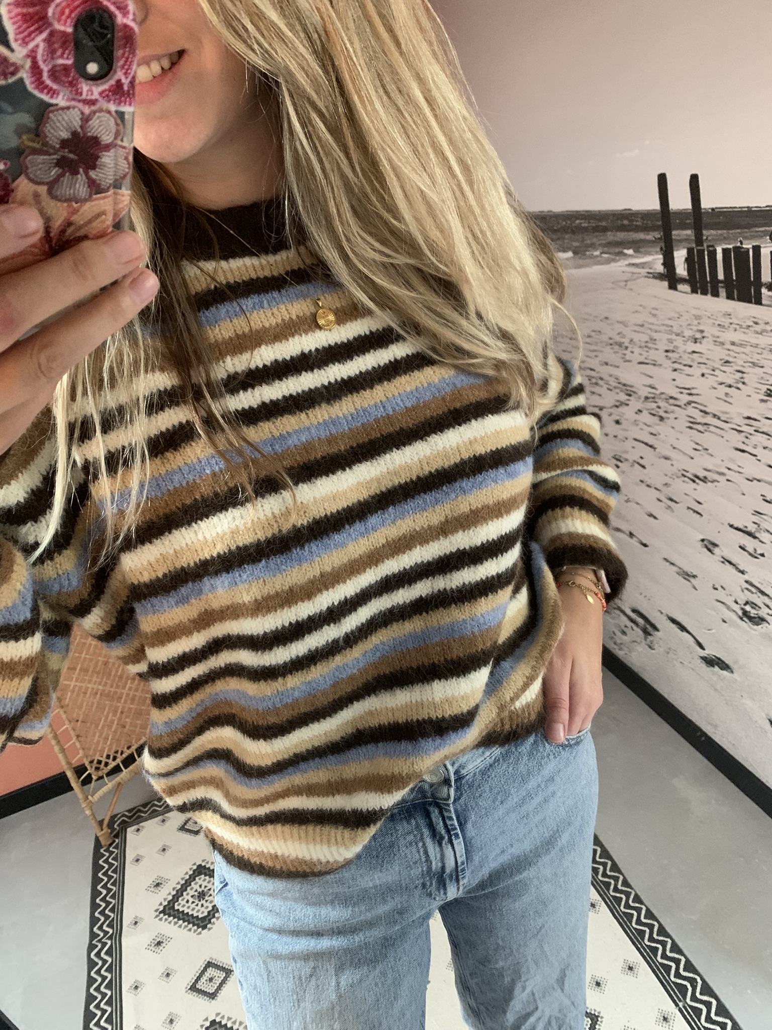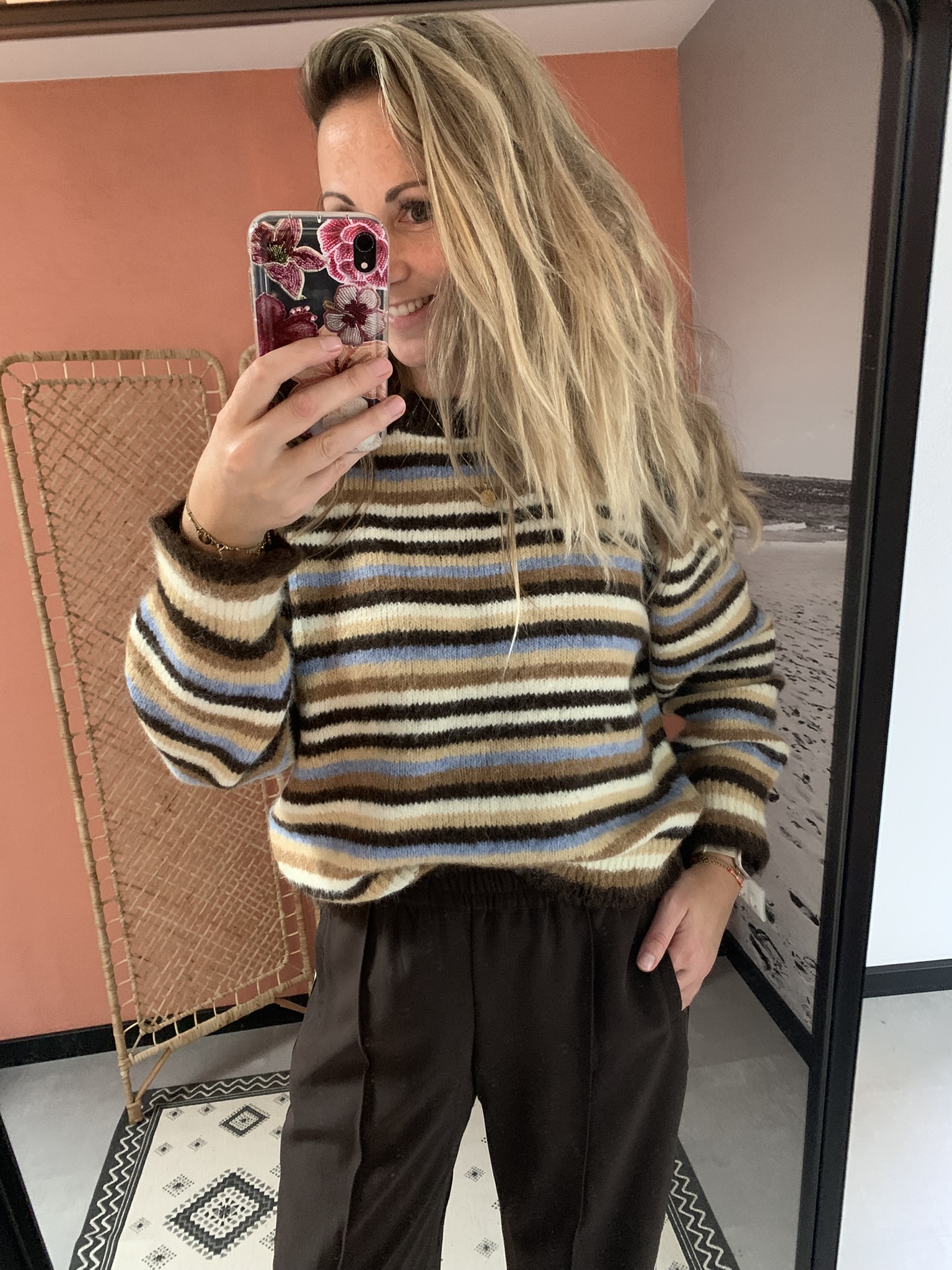 Heerlijk zacht truitje (Geen kriebels!), met strepen in de Musthave kleuren van dit najaar!