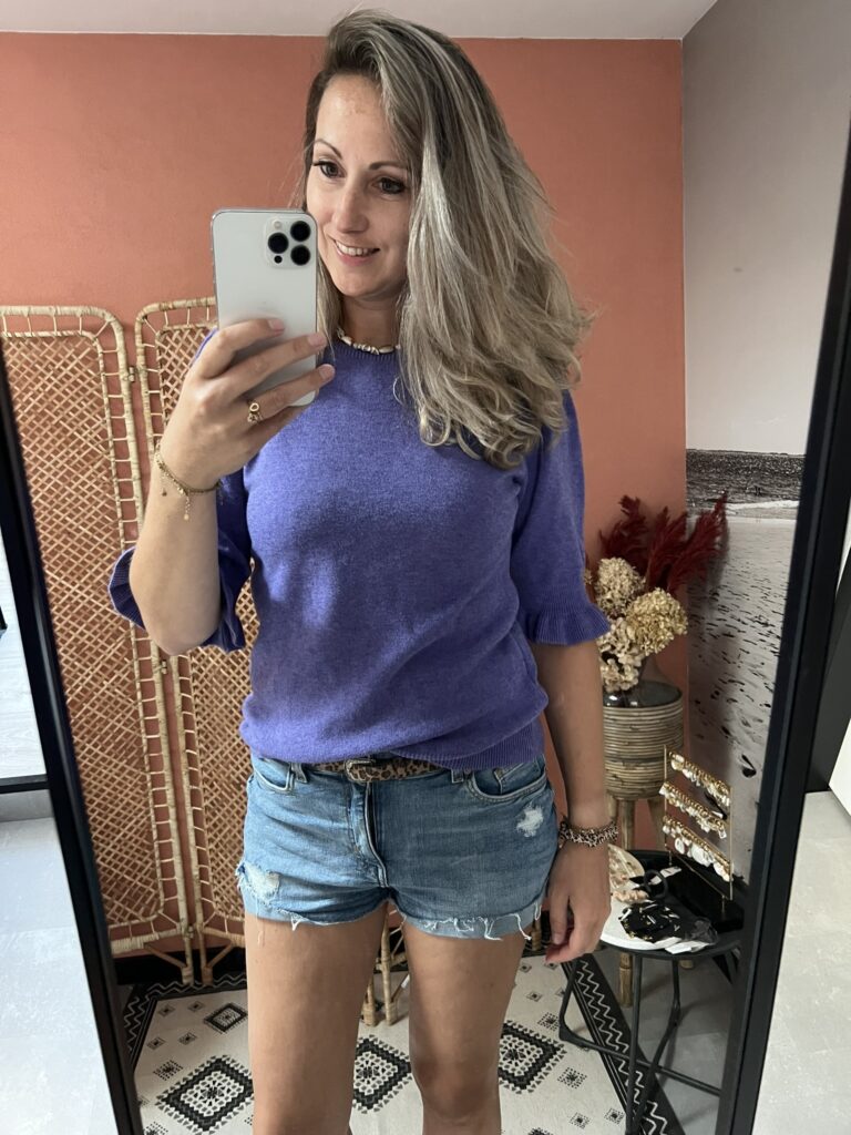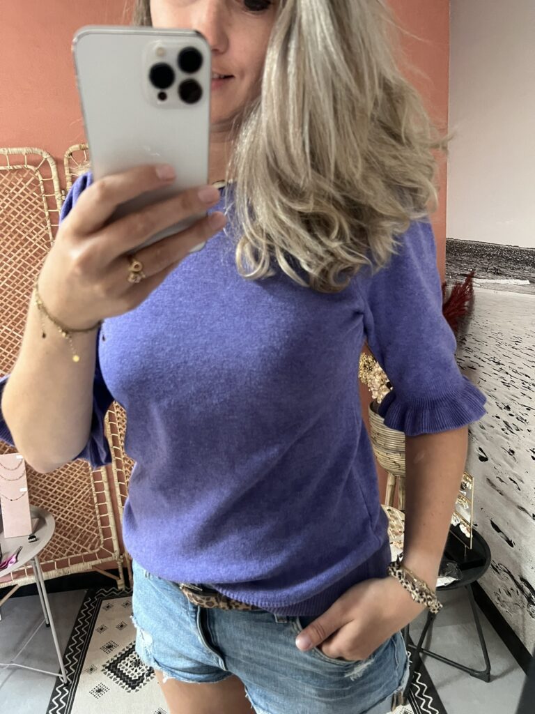 Basic aangesloten truitje met een mooi subtiele ruffle mouw.